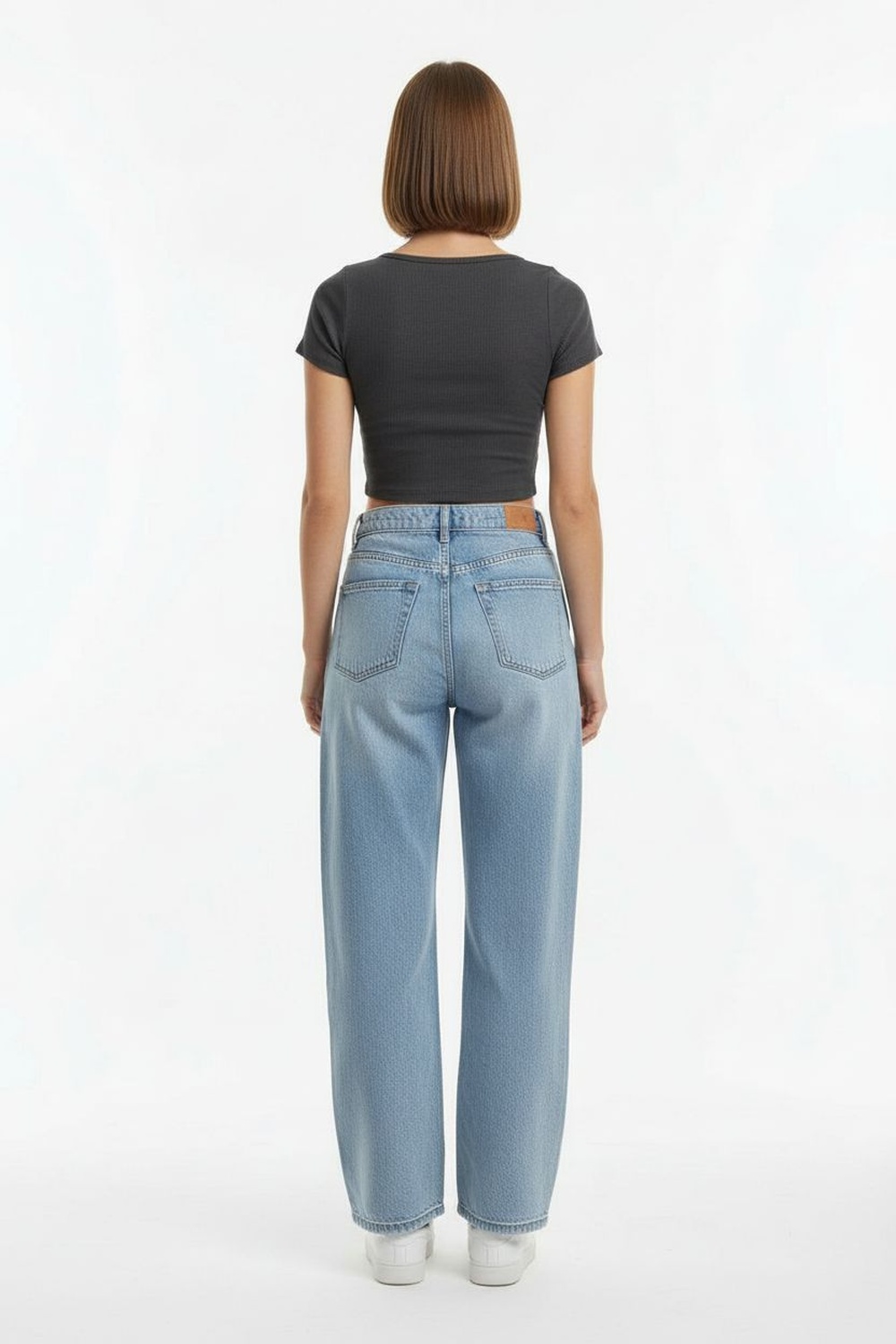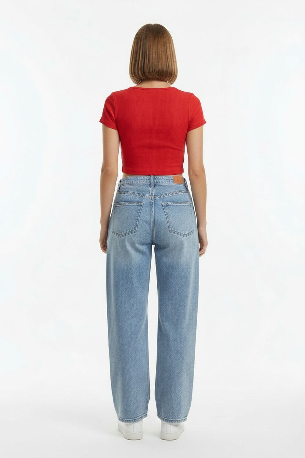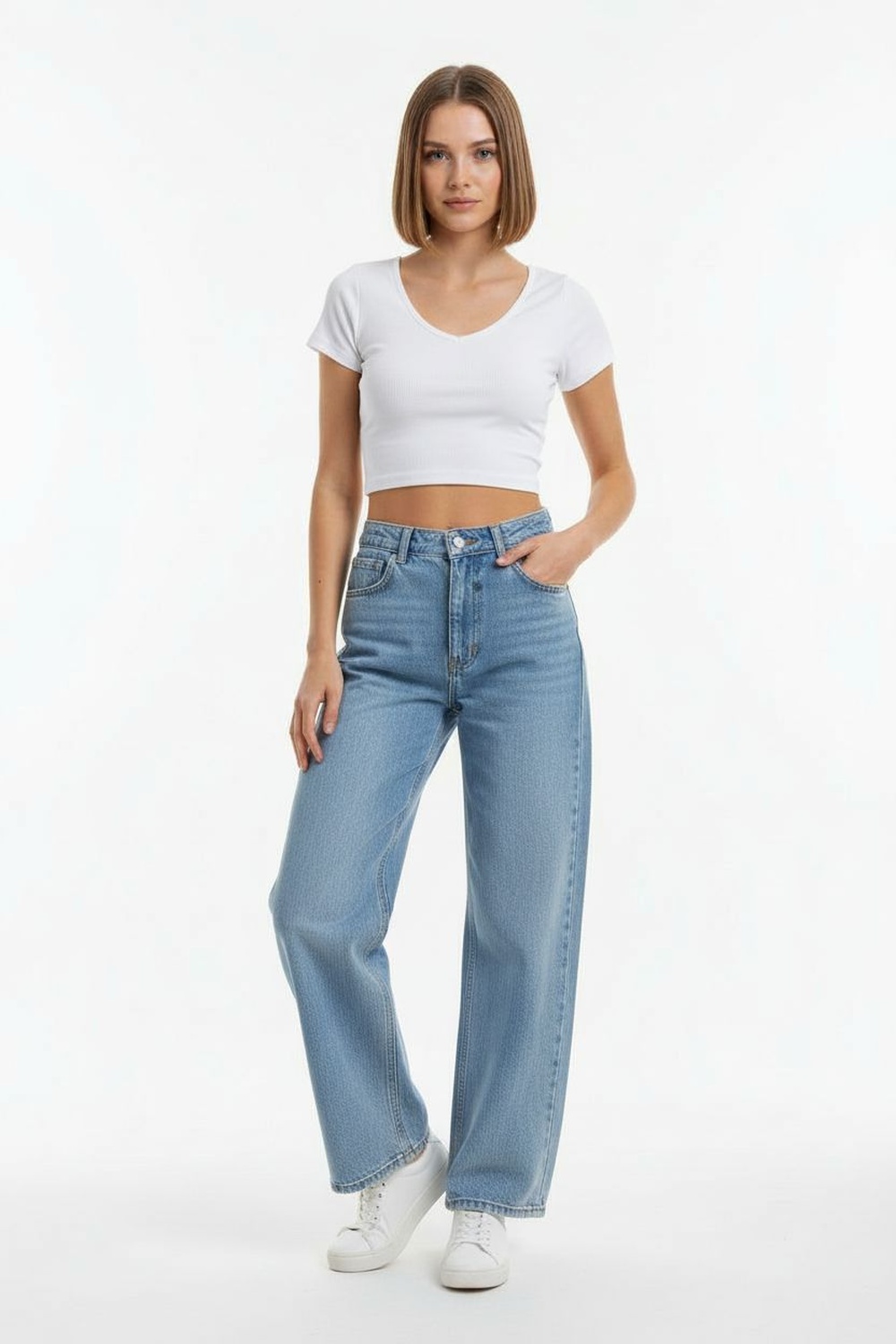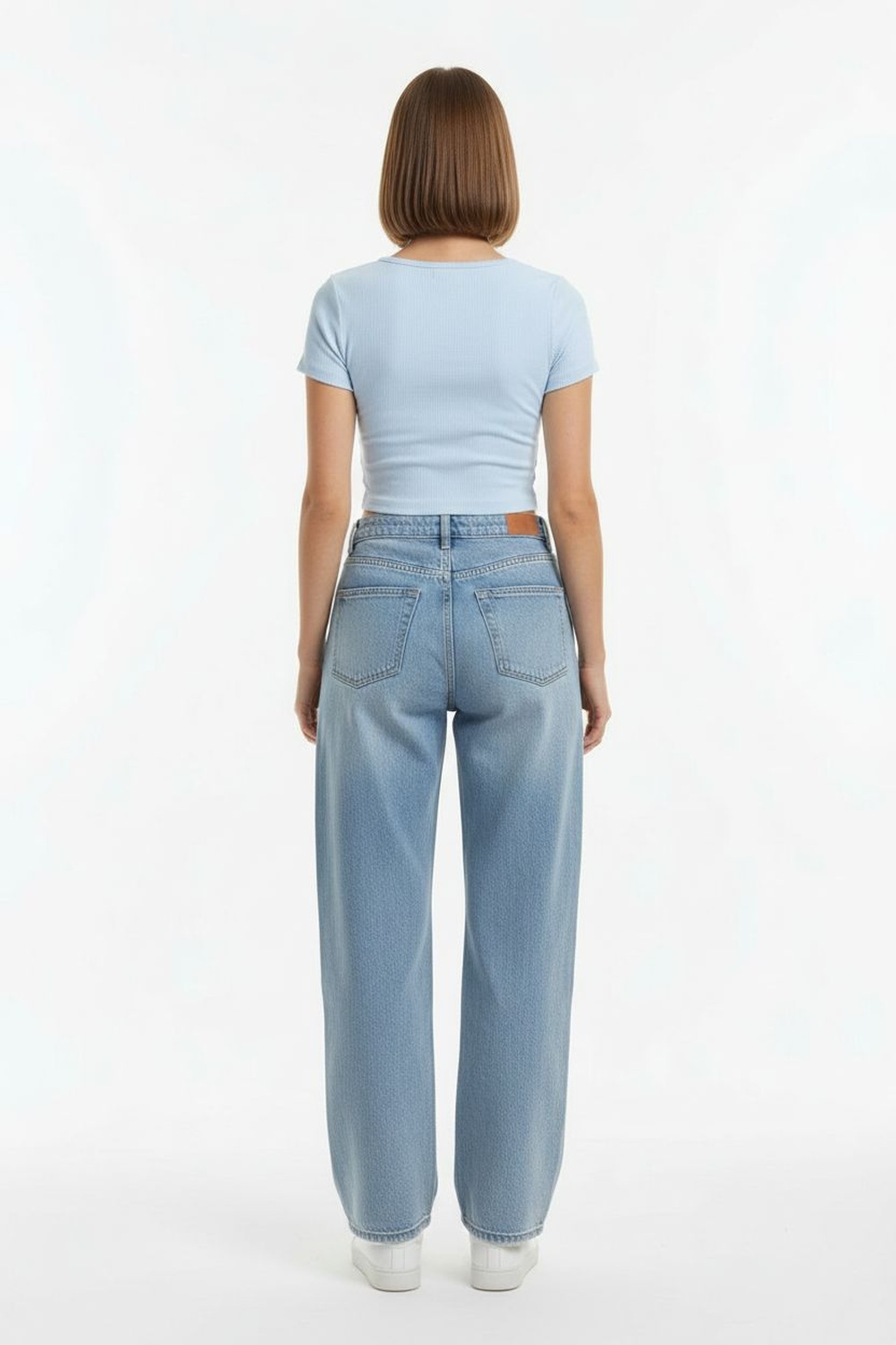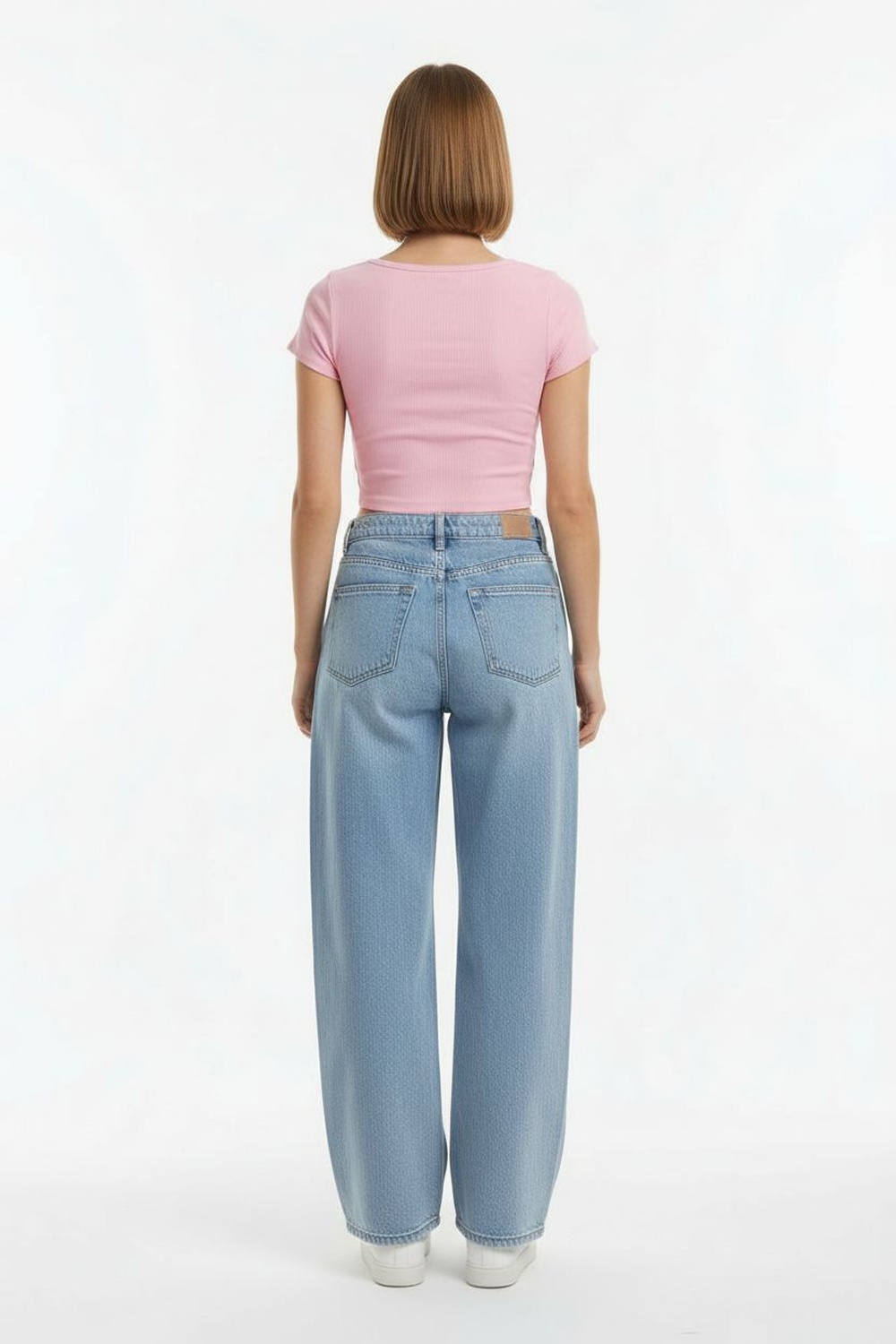 Playera de manga corta con escote en V y tejido tipo rib, ajuste al cuerpo y corte a la cintura