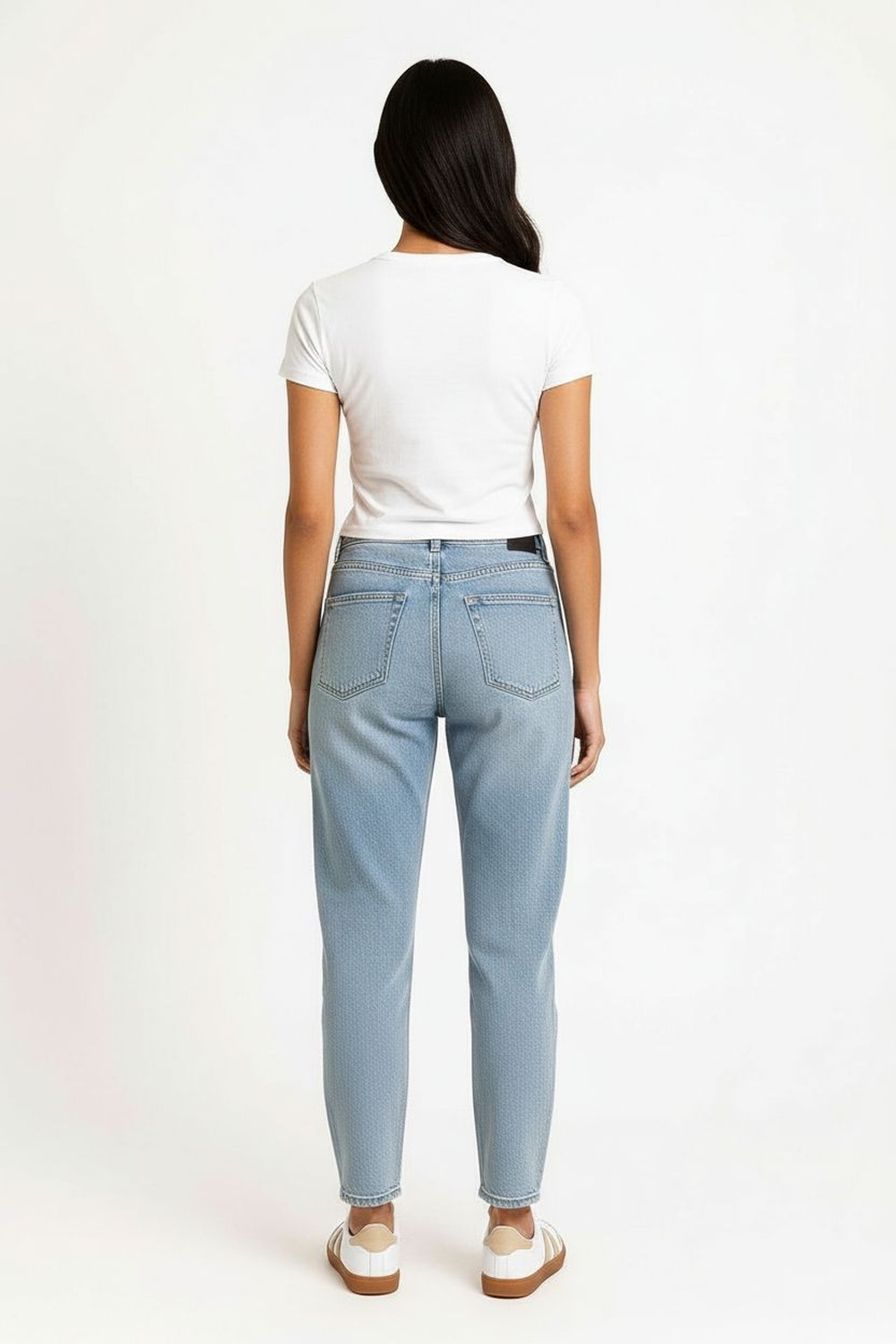 La falda presenta un diseño tableado con textura sutil que aporta movimiento y frescura