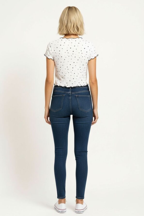 Jeans de corte wide leg con diseño moderno de cinco bolsas funcionales, tiro alto que realza la figura y aporta comodidad, detalle destroyer sutil que añade un toque urbano, confección en mezclilla elástica que ofrece ajuste perfecto y libertad de movimiento, dobladillo recto con acabado limpio que conserva su forma tras cada uso