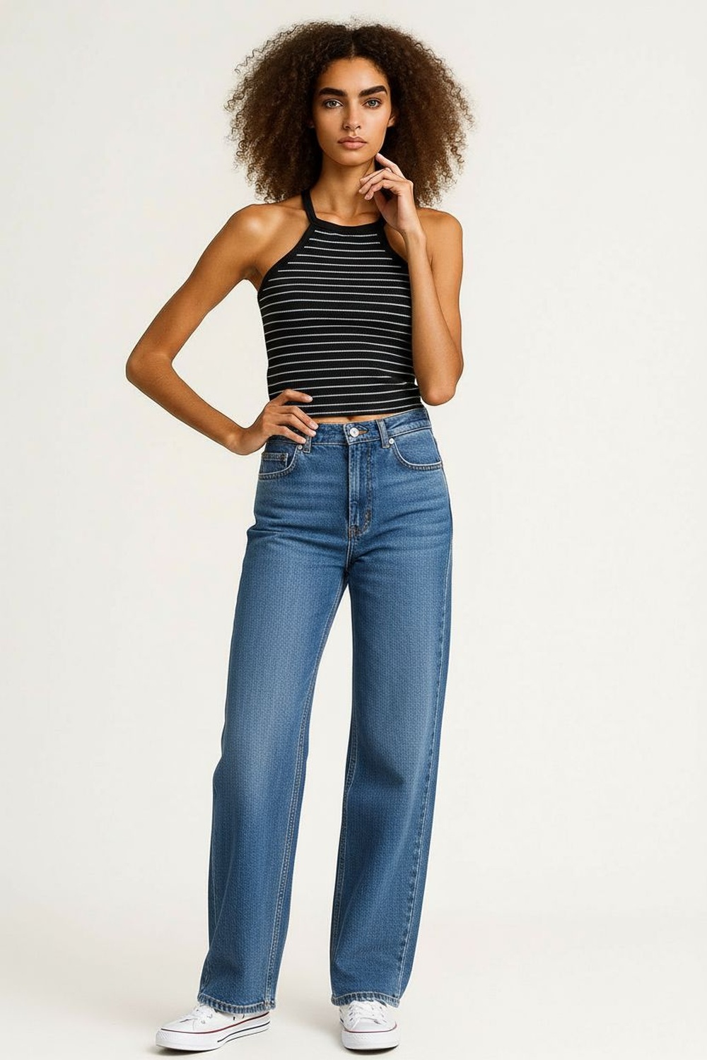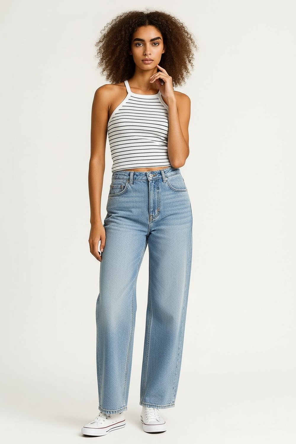 Top de cuello alto, tirantes delgados, ajuste al cuerpo, textura ligera, diseño sin mangas, largo a la cintura