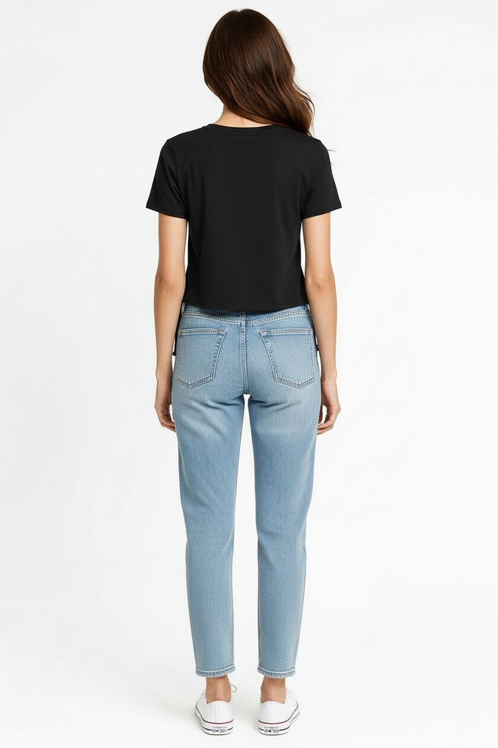 Playera crop de manga corta con cuello redondo reforzado, aplicación frontal con relieve, costuras finas y dobladillo sin remate para un acabado juvenil y moderno, confeccionada en algodón con elasticidad ligera que garantiza suavidad al tacto