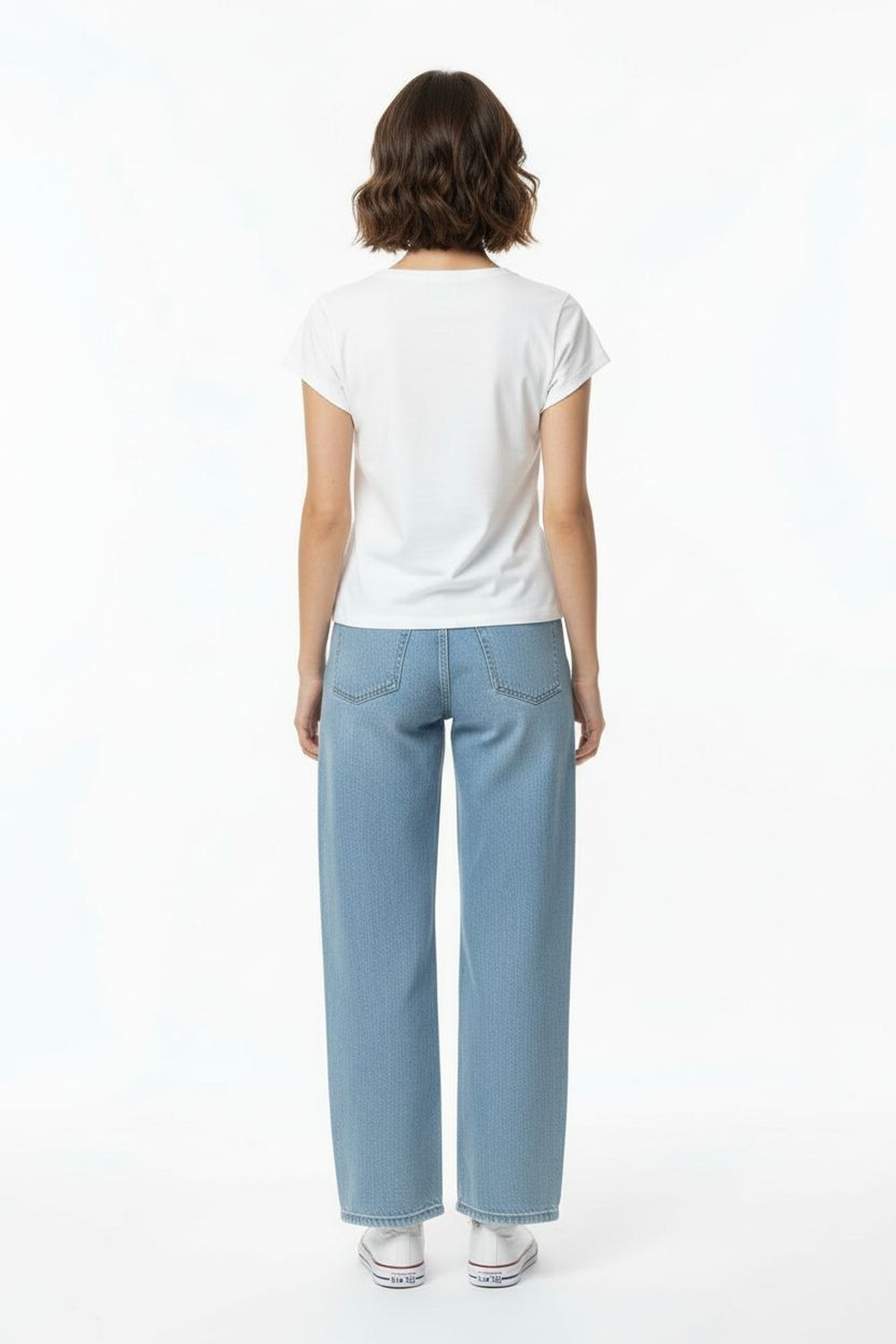 Playera corta de manga corta, cuello redondo, estructura ajustada, aplicación de texto al frente, acabado suave al tacto, diseño ligero para uso continuo
