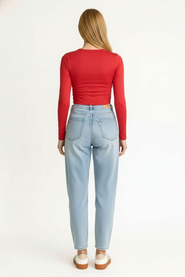Playera de manga larga con cuello redondo y diseño ajustado que realza la silueta, confeccionada en tejido suave con acabado stretch que brinda comodidad y libertad de movimiento, corte a la cintura que aporta un toque moderno