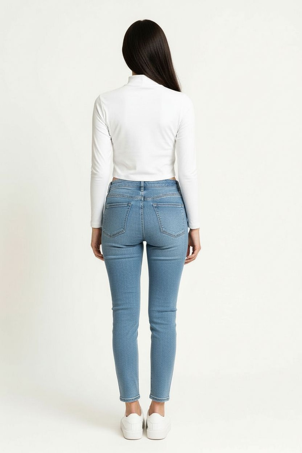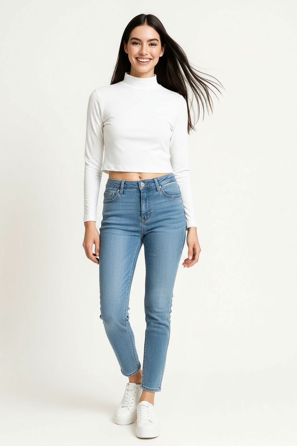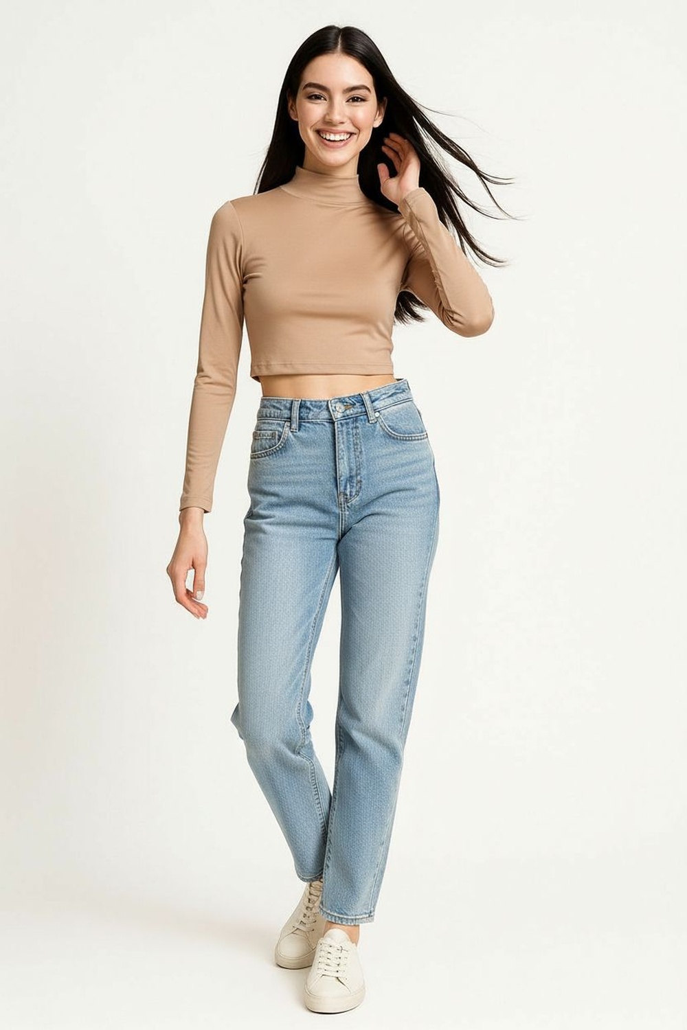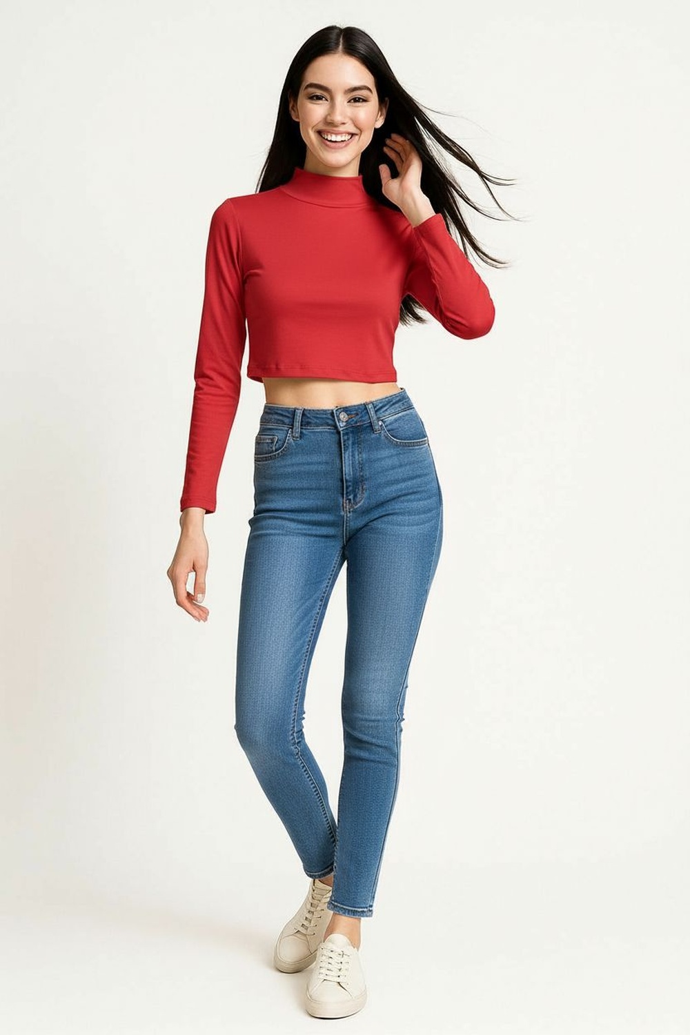 Playera corta de cuello alto con diseño liso que aporta un estilo moderno y versátil, confección en tejido suave tipo brush con textura agradable al tacto, mangas largas que ofrecen cobertura ligera, corte ajustado que define la silueta sin perder comodidad y acabado limpio que la convierte en una prenda básica para cualquier guardarropa