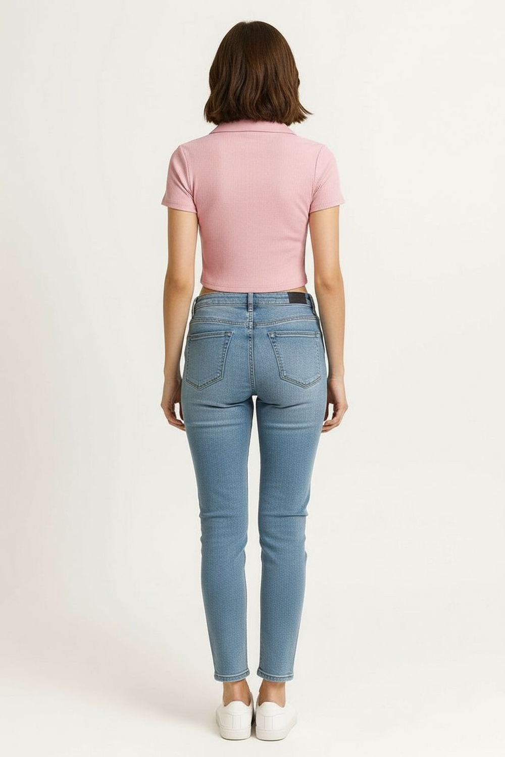 Playera de largo corto con cuello tipo polo que aporta un acabado estructurado, escote frontal con apertura funcional que facilita el ajuste, manga corta que brinda comodidad, confección en tejido rib de textura firme que se adapta al cuerpo, terminaciones limpias en dobladillos que conservan la forma