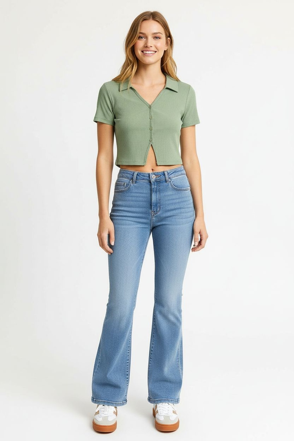 Playera de tirantes con escote en v y abertura frontal con botonadura funcional, confección en tejido rib que aporta elasticidad y ajuste al cuerpo, corte corto que define la silueta, tirantes delgados con soporte ligero, terminación inferior recta con caída natural