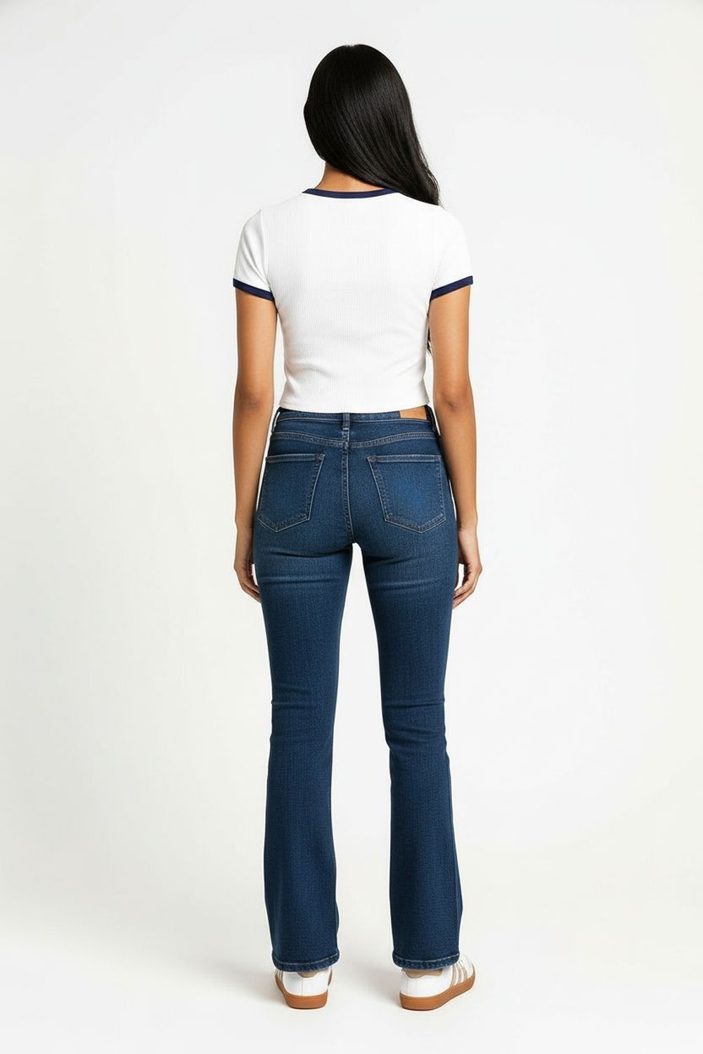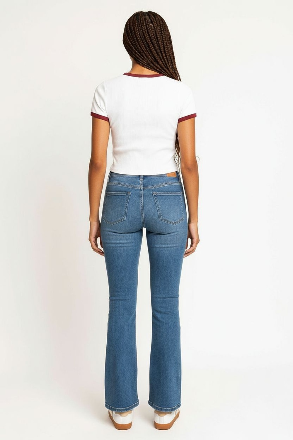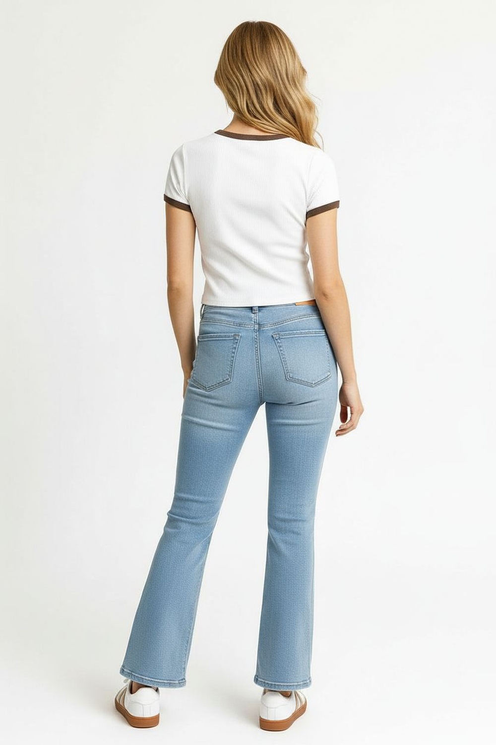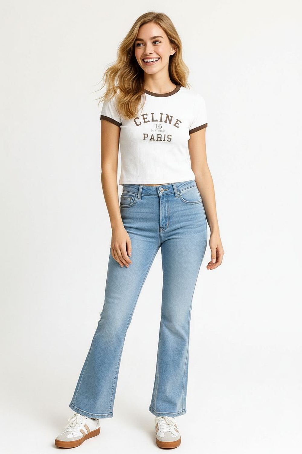 Playera de corte ajustado en tela acanalada con cuello redondo y bies en contraste, diseño frontal con letras que aporta un toque moderno y juvenil, mangas cortas con terminado reforzado para mejor ajuste