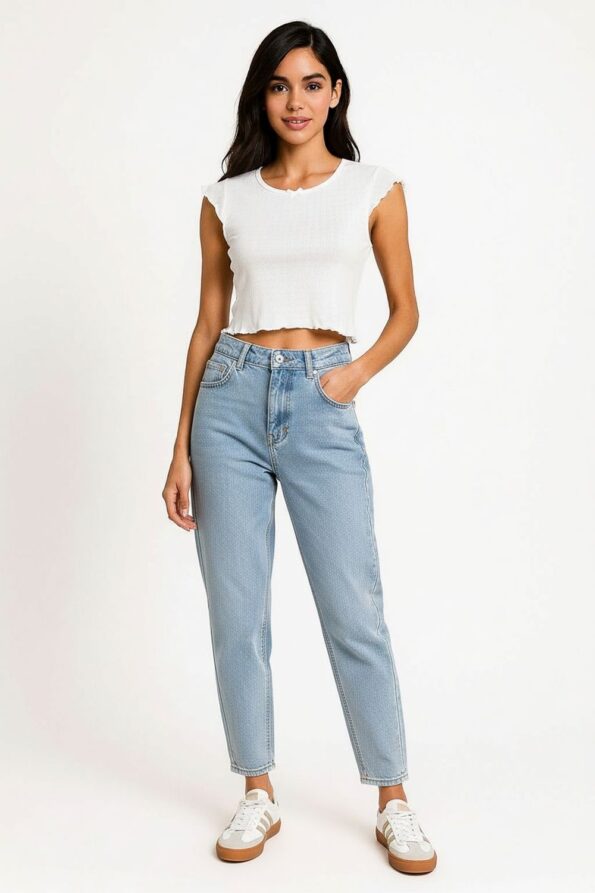Playera crop confeccionada en tejido rib que se ajusta al cuerpo con suavidad, escote amplio que favorece el cuello y realza la figura, detalle de encaje al tono que añade un toque femenino y moderno, mangas largas con terminación delicada que aportan equilibrio al diseño, confección elástica que garantiza confort y movilidad durante el día