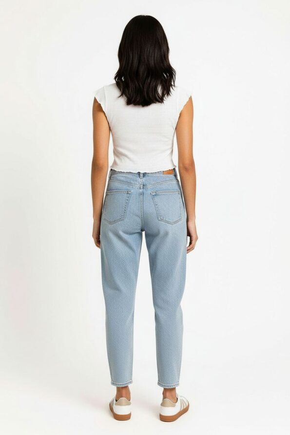 Suéter de manga larga confeccionado en tejido de viscosa suave con diseño geométrico que aporta un toque moderno, cuello redondo con acabado acanalado que brinda confort, corte corto que realza la figura y estructura ligera que permite libertad de movimiento, ideal para crear combinaciones casuales con estilo