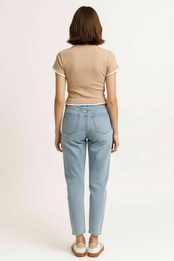 Playera de tejido waffle con textura ligera que aporta suavidad y frescura, corte corto que realza la figura con estilo moderno, escote redondo con terminación pulida que brinda comodidad y versatilidad, manga corta con ajuste flexible que favorece el movimiento