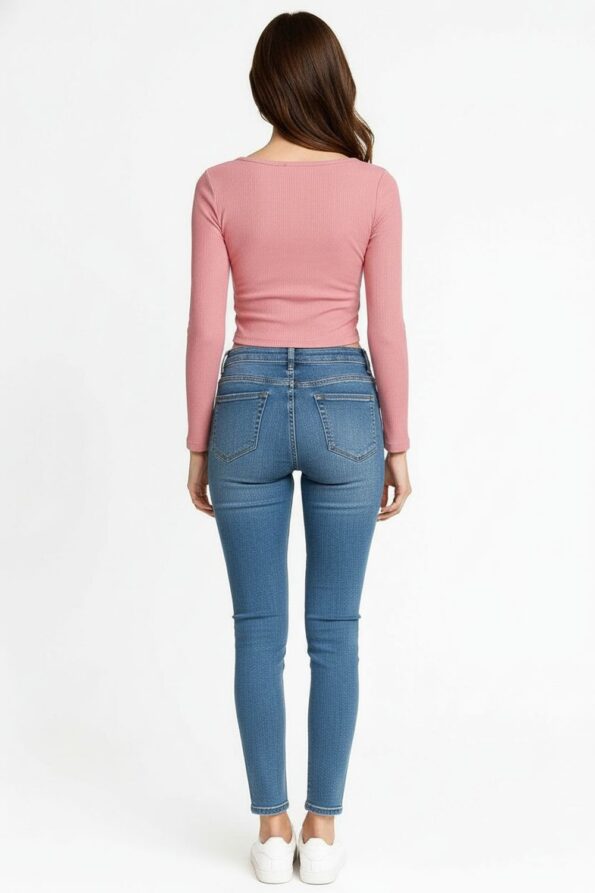 Playera de manga larga confeccionada en tejido rib de textura acanalada que ofrece elasticidad y confort, escote redondo con detalle de ojillos metálicos y jareta ajustable que aporta un toque moderno, corte crop que realza la figura, terminaciones limpias y costuras planas que aseguran durabilidad y un acabado pulido