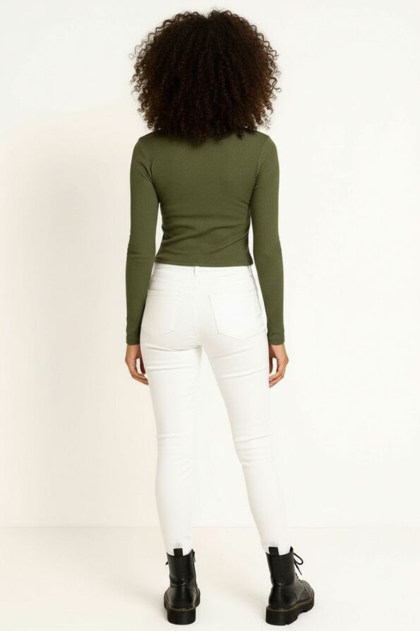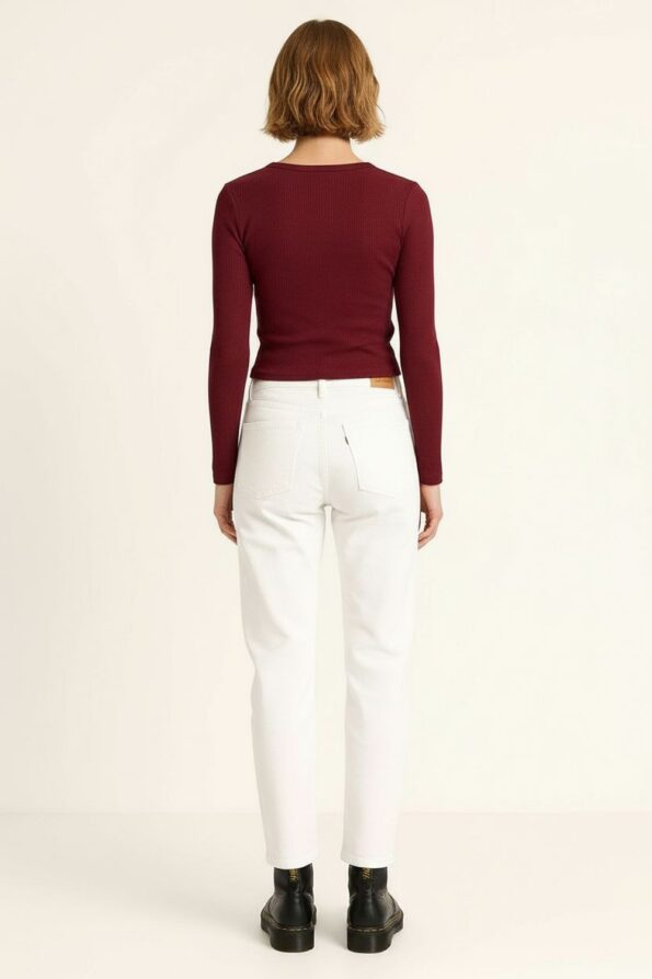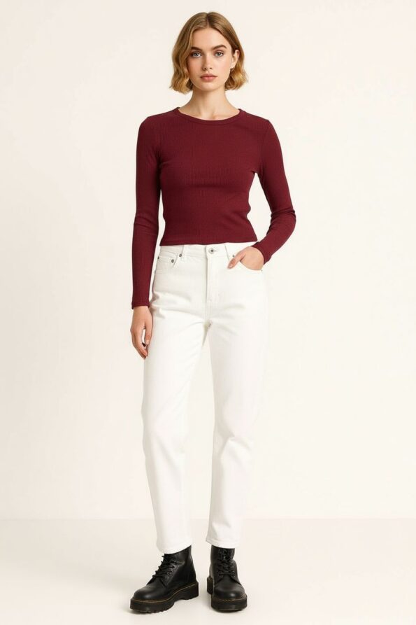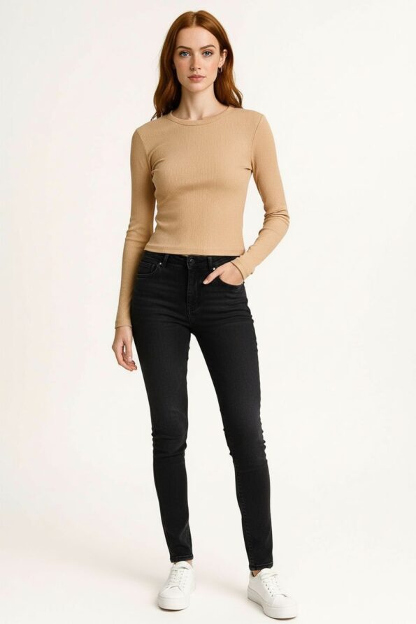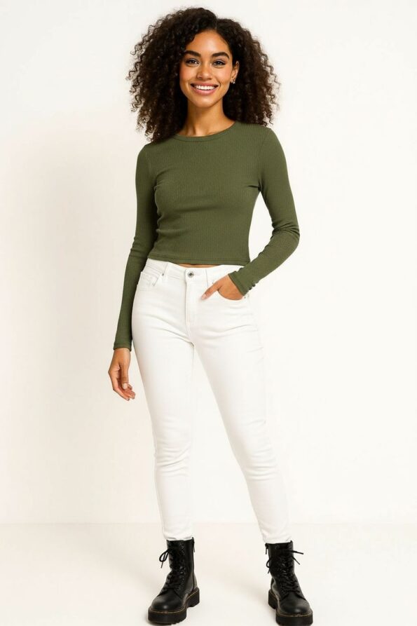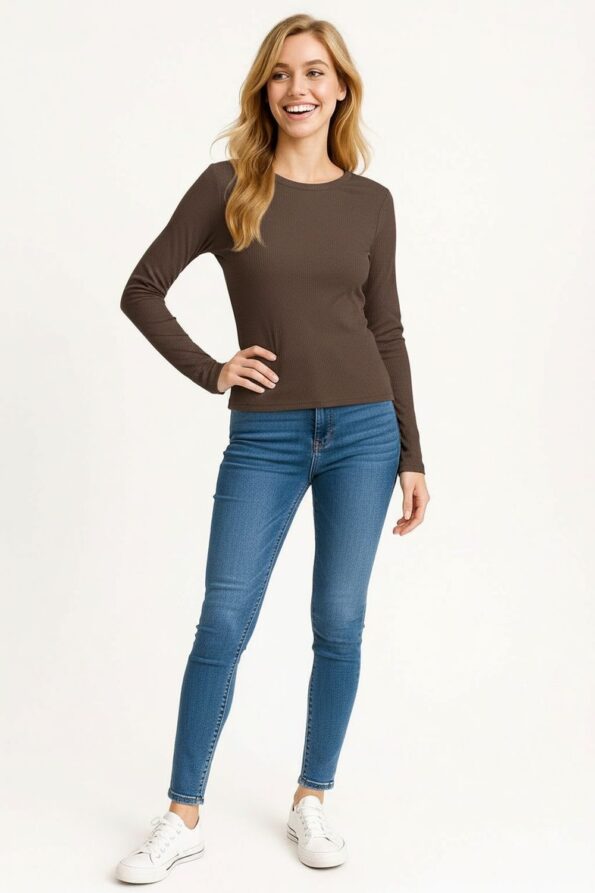 Playera rib de manga larga con cuello redondo clásico, diseño crop que estiliza la silueta y realza el cuerpo, confeccionada en tejido acanalado elástico que brinda comodidad y ajuste flexible, acabados reforzados en dobladillo y mangas que aseguran durabilidad