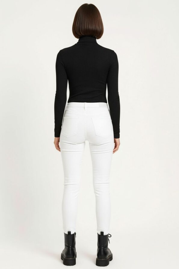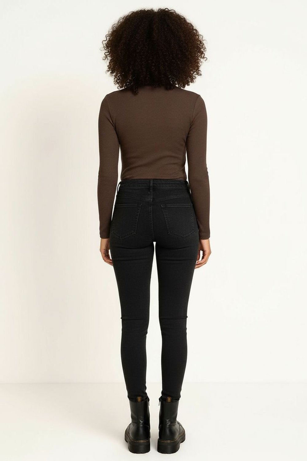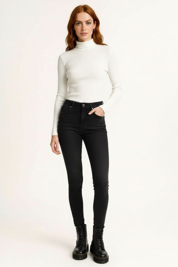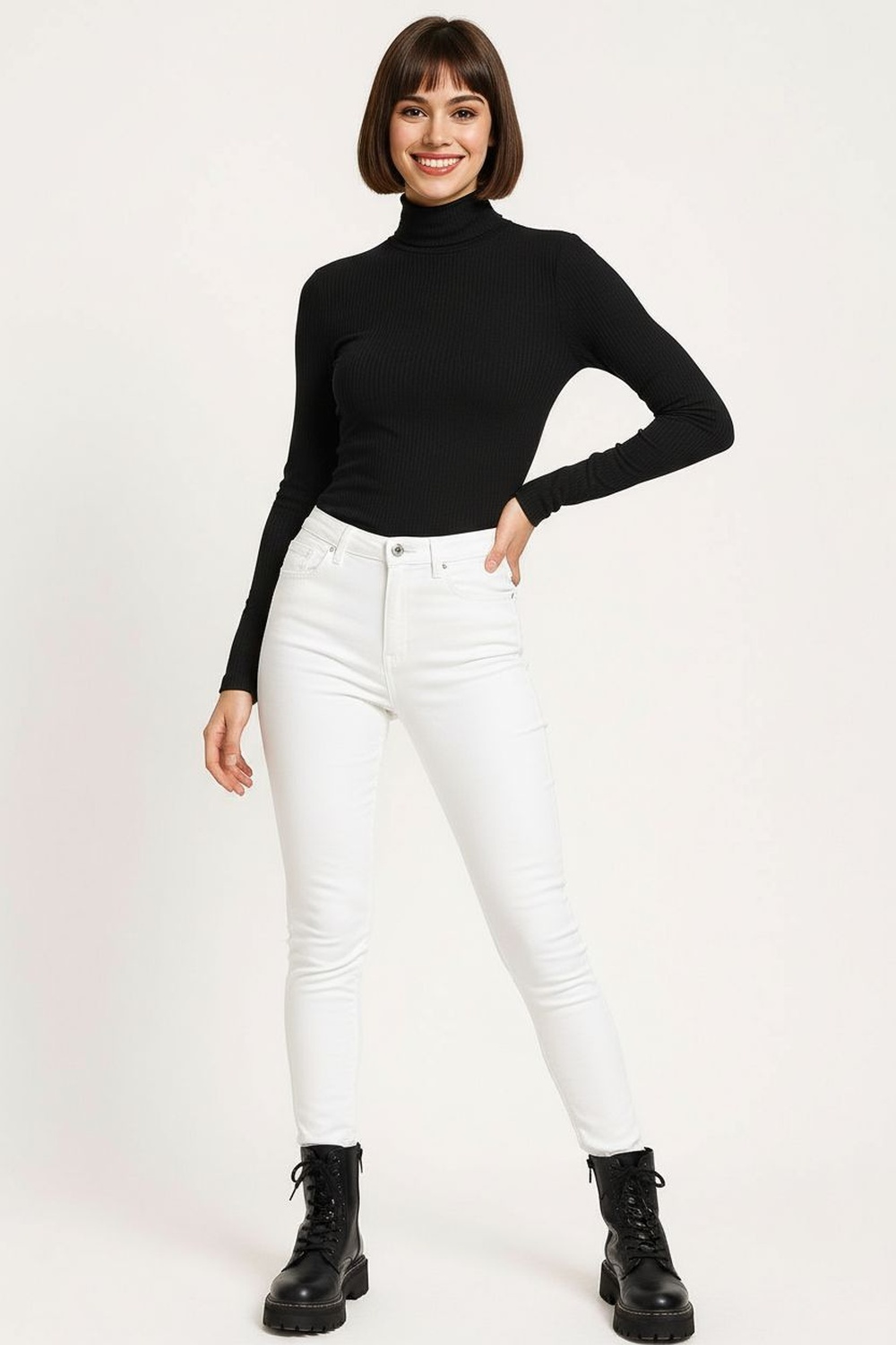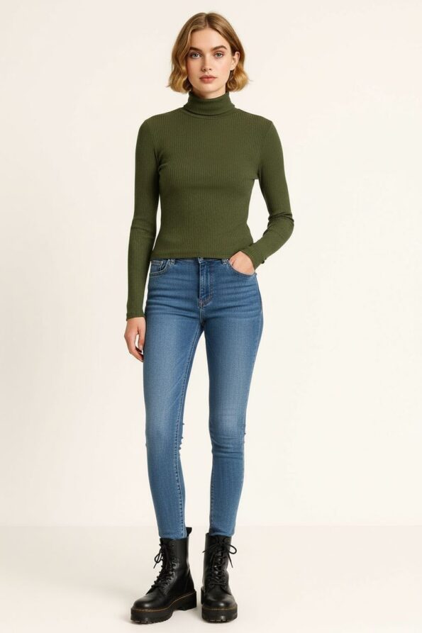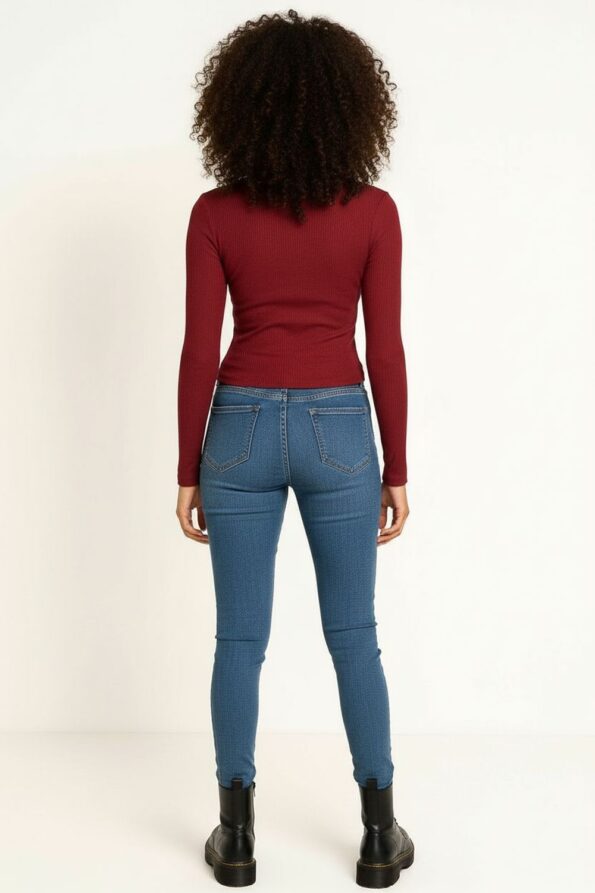 Playera de manga larga confeccionada en tejido rib que se ajusta suavemente a la silueta, cuello ruso que estiliza el cuello y brinda mayor cobertura, corte corto a la cintura que aporta un look moderno y favorecedor, confección en tela elástica que ofrece libertad de movimiento y comodidad, acabado ligero y suave que asegura confort durante todo el día