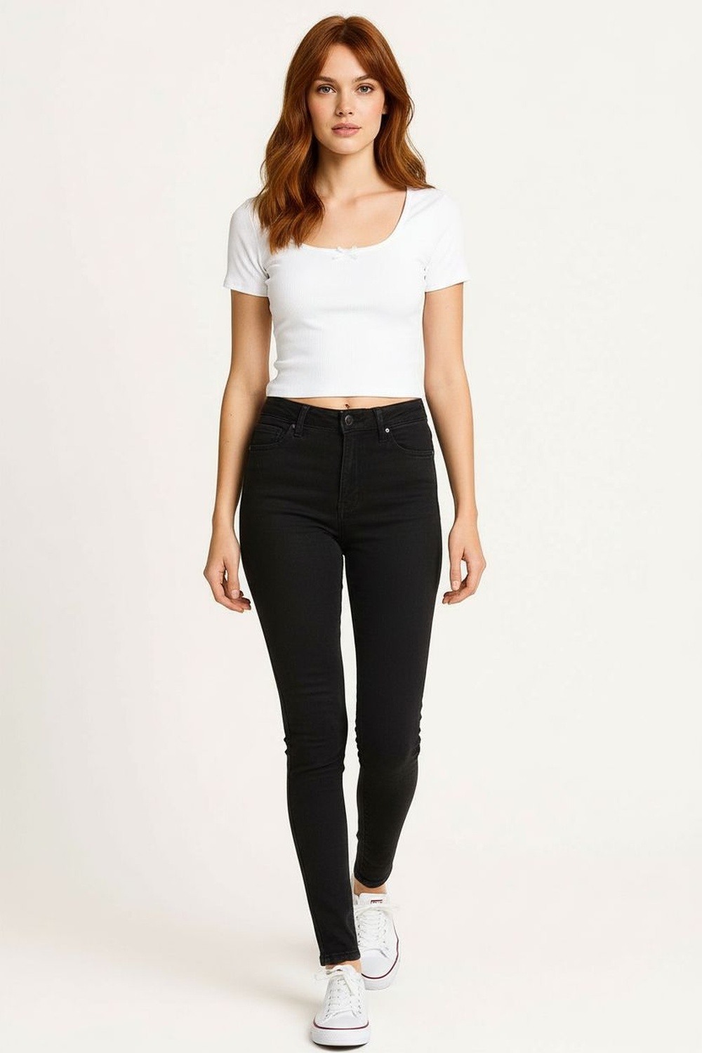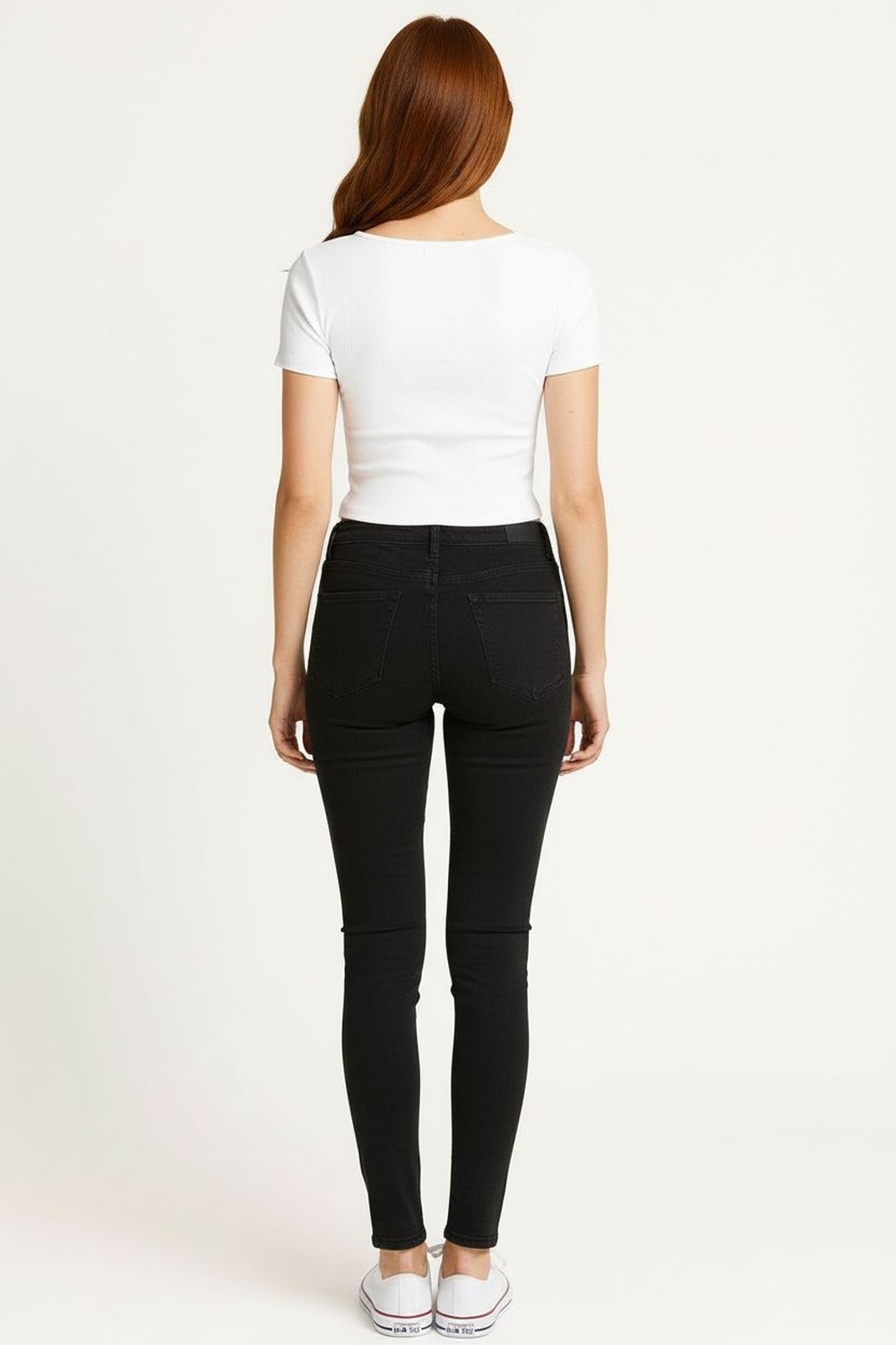 Pantalón de tiro alto con pretina estructurada que brinda soporte y ajuste cómodo, corte recto en pierna que estiliza la silueta, cierre frontal oculto para apariencia limpia, largo al tobillo que facilita su uso diario, confección en tejido resistente de tacto suave