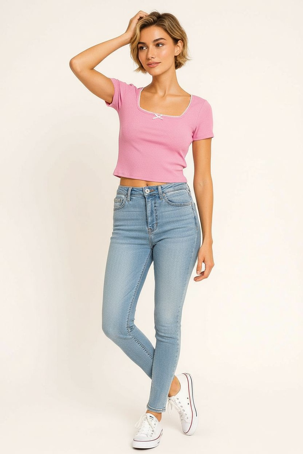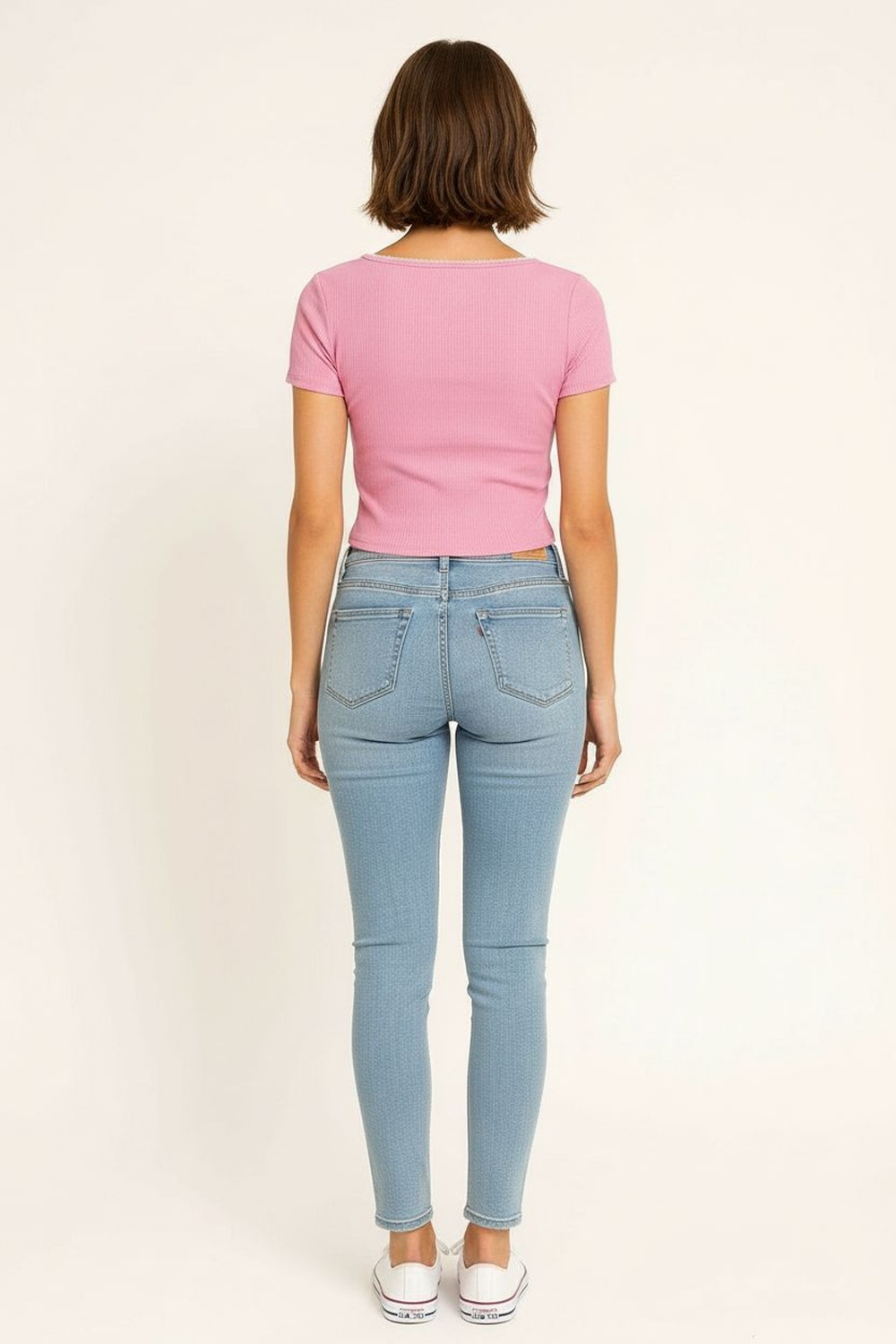 Playera corta de tejido rib con estructura elástica que brinda ajuste cómodo al cuerpo, cuello redondo con acabado limpio que aporta mejor soporte, manga corta integrada para mayor libertad de movimiento, largo a la cintura que realza la proporción de la silueta, confección ligera con tacto suave y buena recuperación