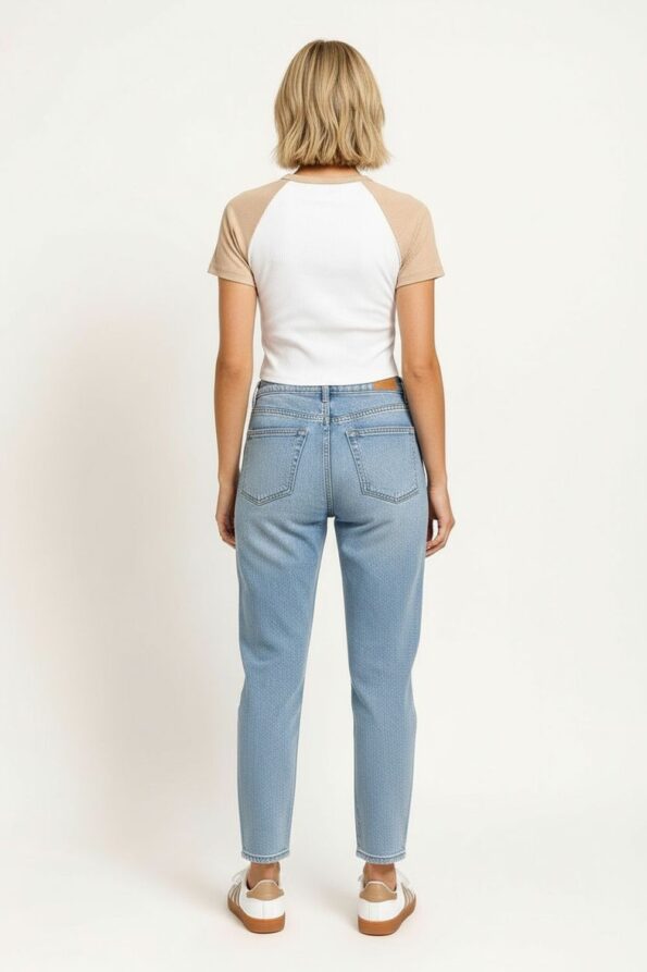Pantalón de corte recto con pretina al contraste que aporta un detalle distintivo, tiro medio que asegura ajuste favorecedor, bolsillos laterales funcionales que brindan practicidad, confección en tejido suave con caída ligera que ofrece comodidad y movilidad, costuras reforzadas que garantizan durabilidad