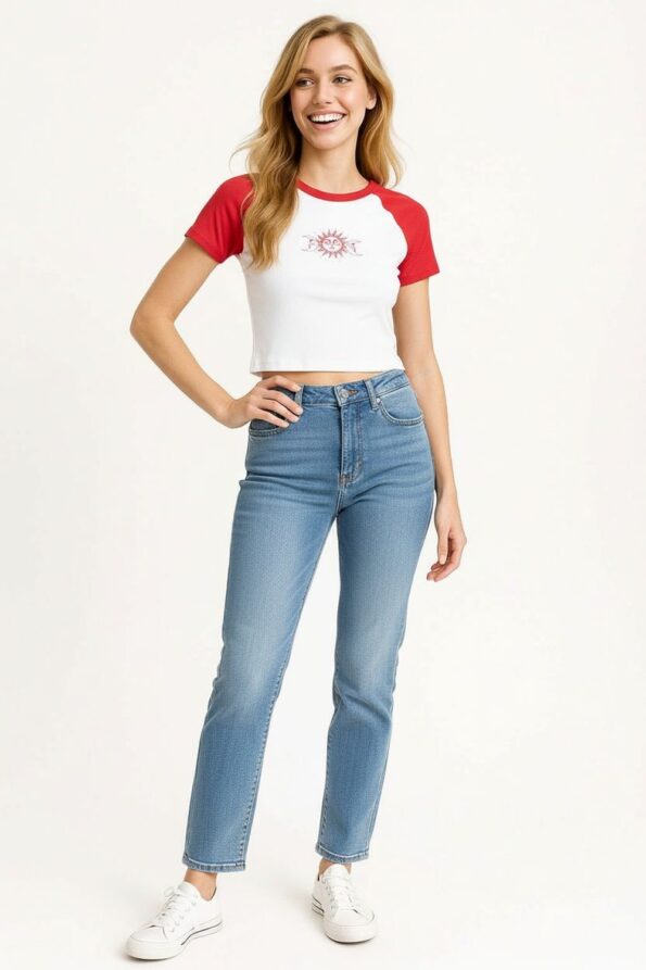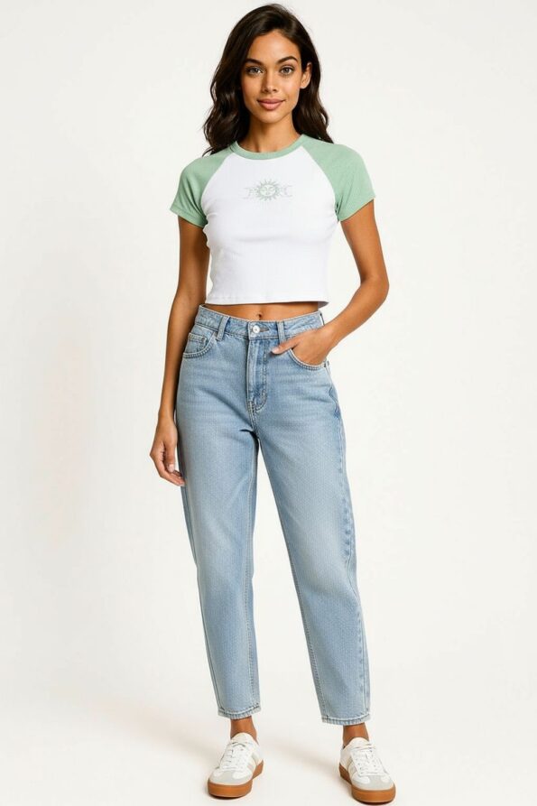 Playera de manga corta con diseño crop que realza la cintura y aporta un estilo juvenil, cuello redondo que brinda comodidad y un ajuste clásico, confección en tejido suave y ligero que favorece la frescura, acabados resistentes en mangas y basta que aseguran durabilidad y comodidad en el uso diario