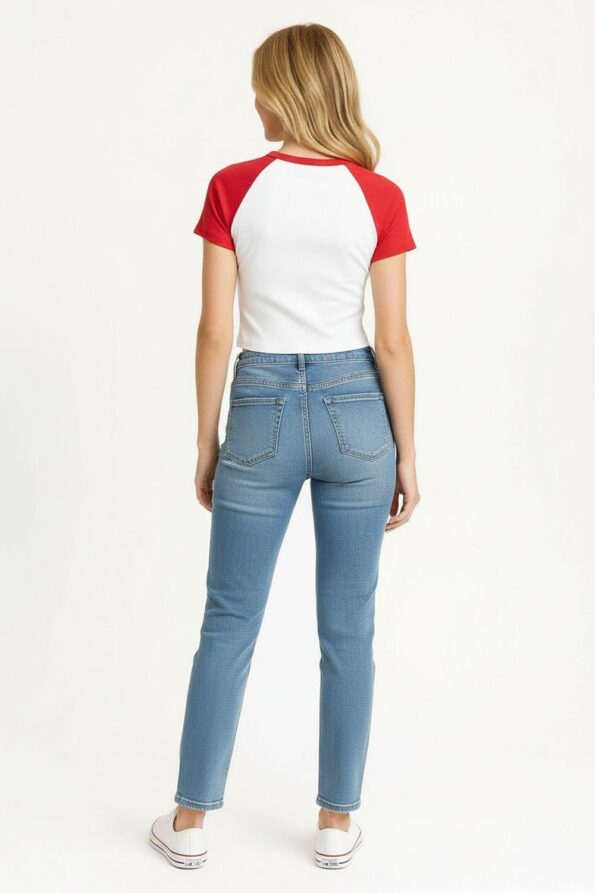 Playera rib de manga corta tipo raglán con cuello redondo en contraste, silueta ajustada que realza la figura con confección en tejido acanalado elástico que aporta comodidad, prenda ligera y fresca con terminaciones reforzadas que brindan durabilidad y resistencia en su uso cotidiano