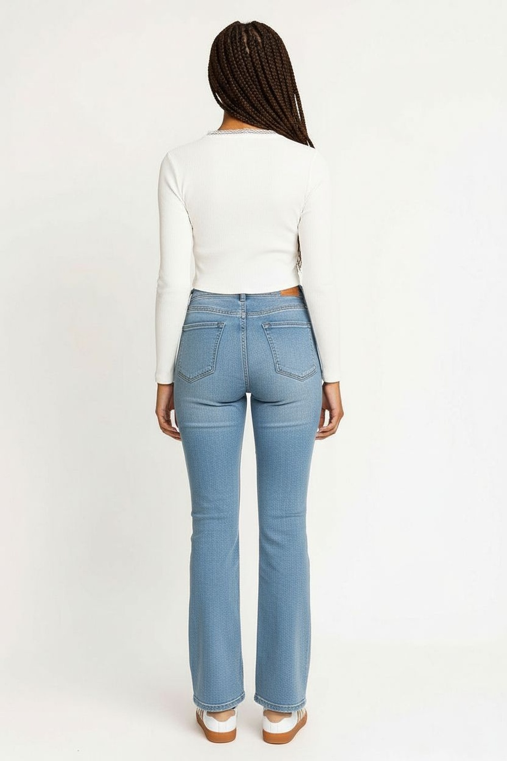 Su silueta ceñida realza la figura con un toque casual y moderno