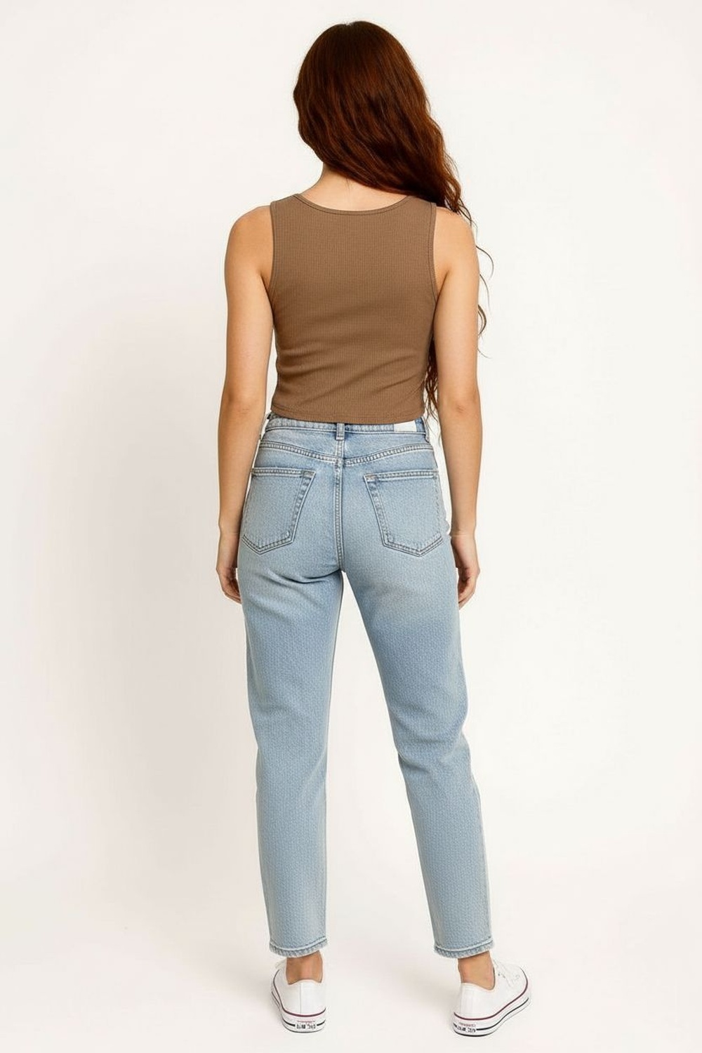 Playera corta de tejido rib con estructura elástica que se adapta al cuerpo, cuello redondo cerrado con terminación limpia, confección sin mangas que brinda comodidad térmica, aplicaciones decorativas distribuidas de forma uniforme, largo crop con ajuste firme en el torso