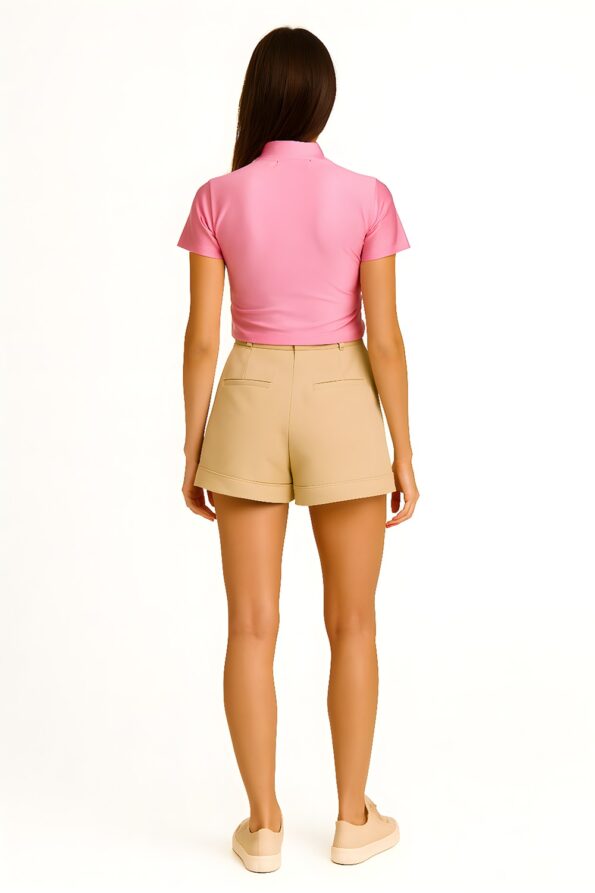 Playera tipo colombiana de manga corta con cuello alto, cierre frontal discreto que aporta un acabado pulido, diseño minimalista ideal para estilos urbanos, sporty o sofisticados, prenda versátil
