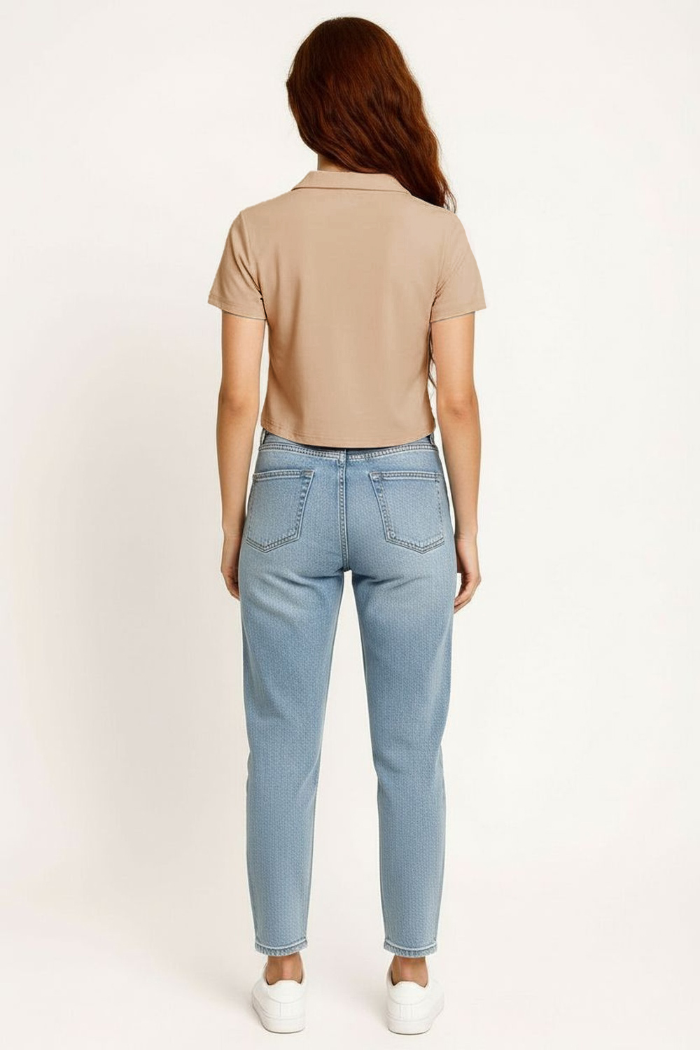 Playera tipo polo de algodón con cuello camisero estructurado y escote en V sutil que estiliza la parte superior, manga corta con acabado limpio en dobladillo, corte recto que brinda ajuste cómodo y versátil, confección ligera que permite frescura y libertad de movimiento para uso diario