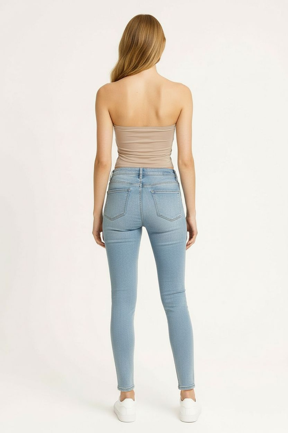 Top de tirantes con escote recto y cortes estructurados al frente, confección en tejido rib con elasticidad que se adapta al cuerpo, diseño ajustado con terminación en pico, tirantes delgados con aplicación decorativa, largo corto con ajuste definido