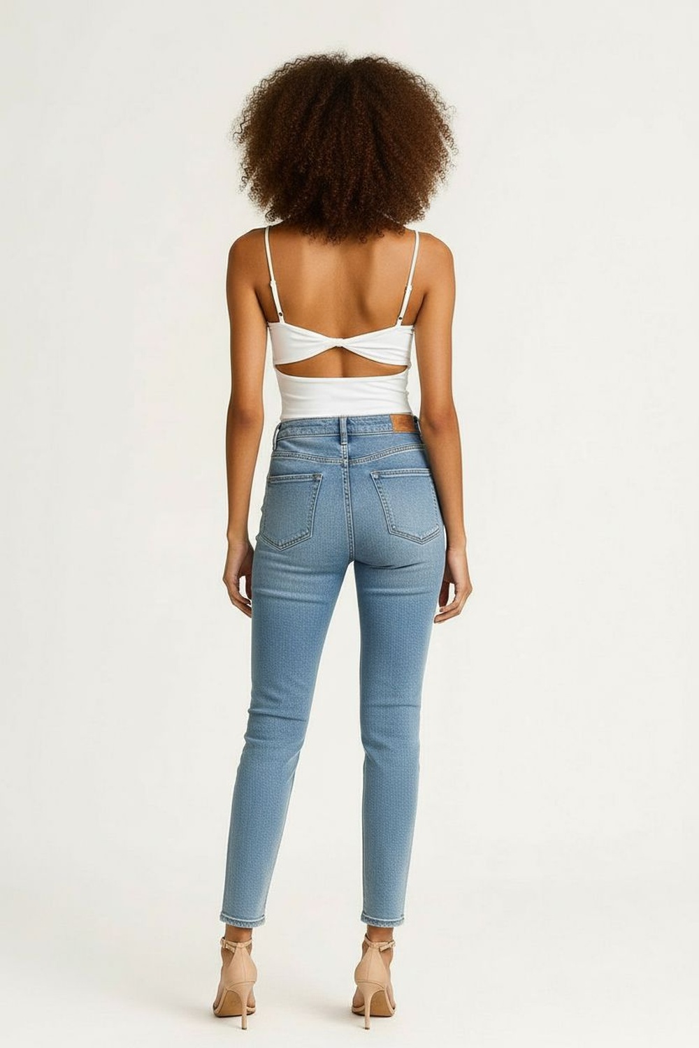 Top con tirantes delgados, copas con plisado frontal, ajuste al cuerpo, espalda con tirantes cruzados, terminación recta