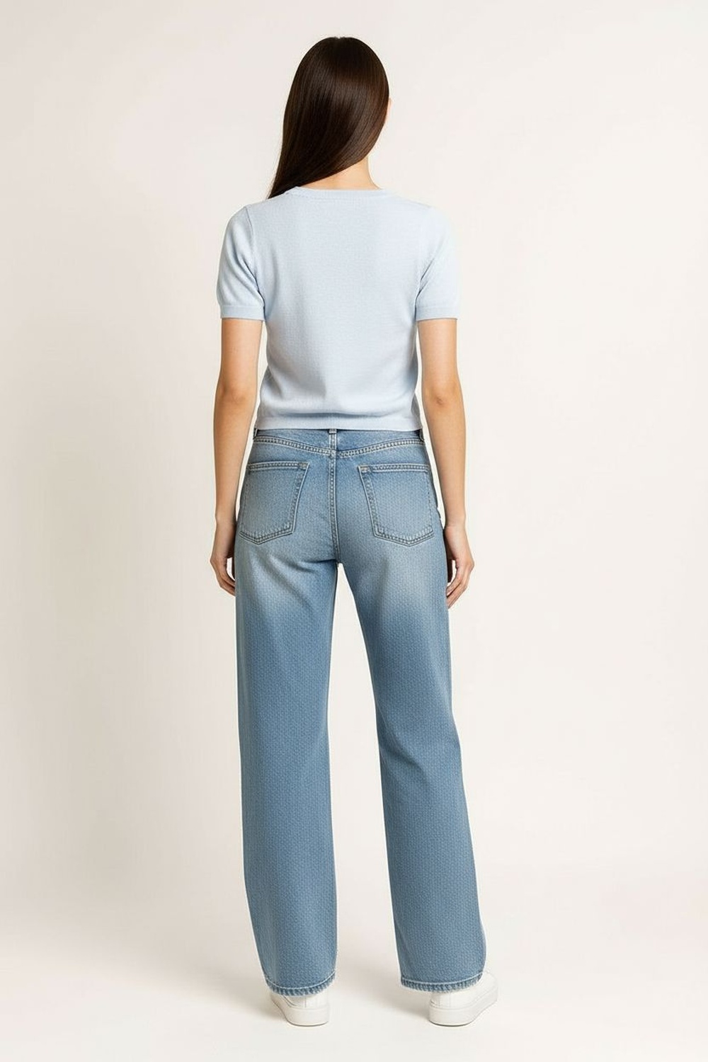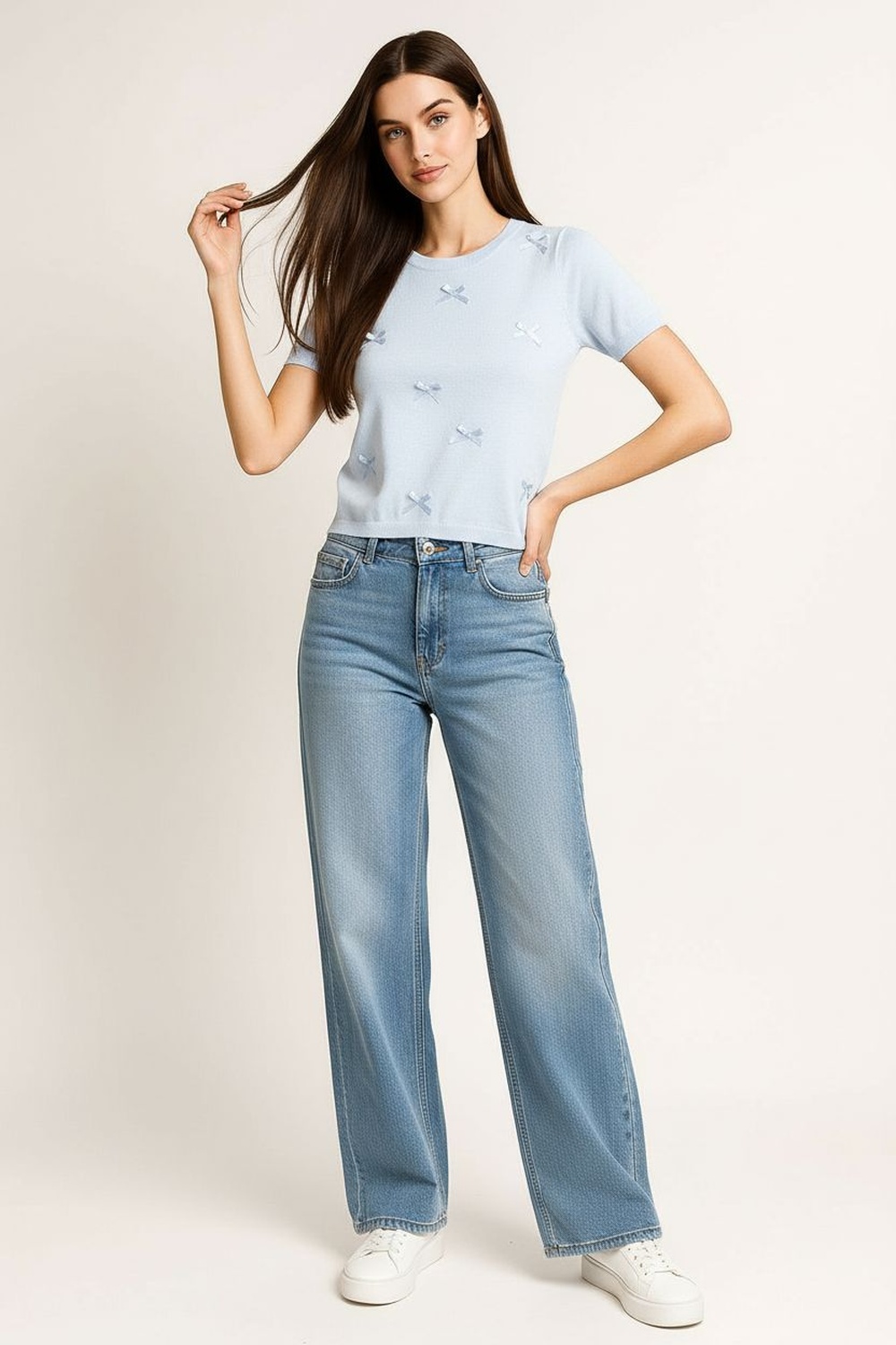 Top corto de manga corta cuello redondo confección ligera con aplicaciones decorativas ajuste cómodo y acabado suave