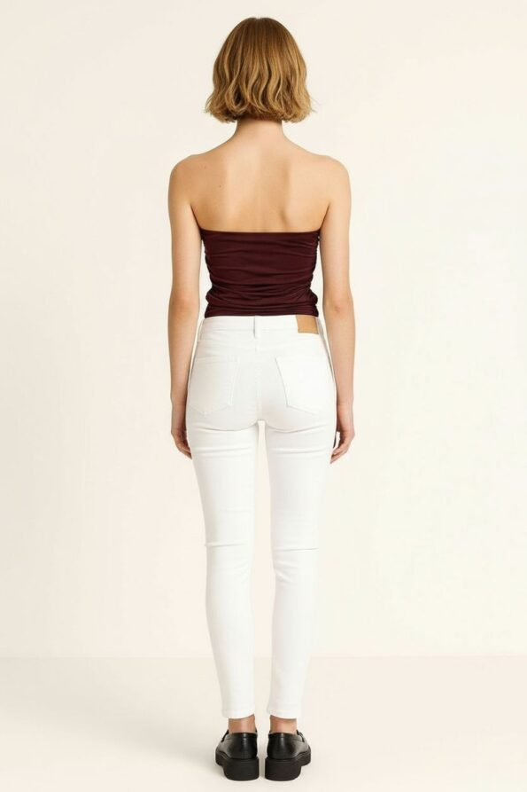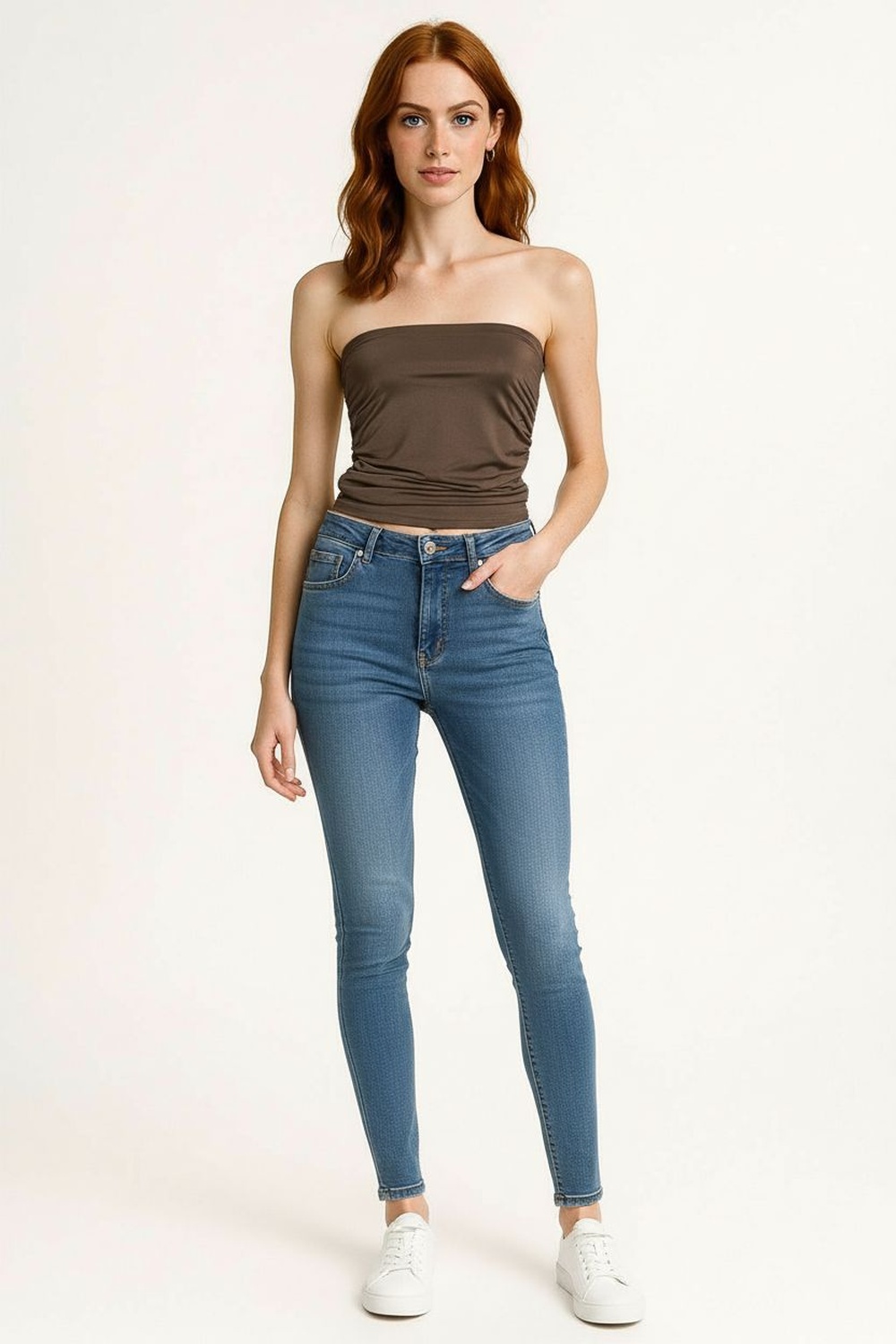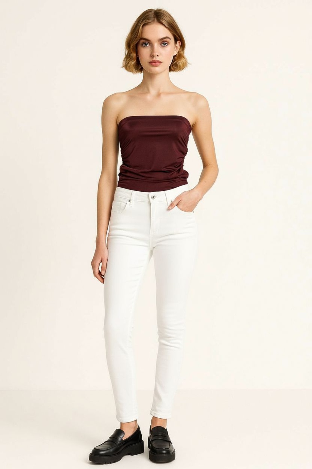 Playerta top tipo banda de corte ajustado con jareta lateral que permite ajustar el largo y aporta un detalle moderno, diseño strapless que deja los hombros descubiertos ofreciendo un estilo juvenil, pretina elástica superior que asegura un ajuste cómodo y seguro, confección en tela suave y elástica que se adapta al cuerpo brindando libertad de movimiento, acabado limpio que realza la silueta
