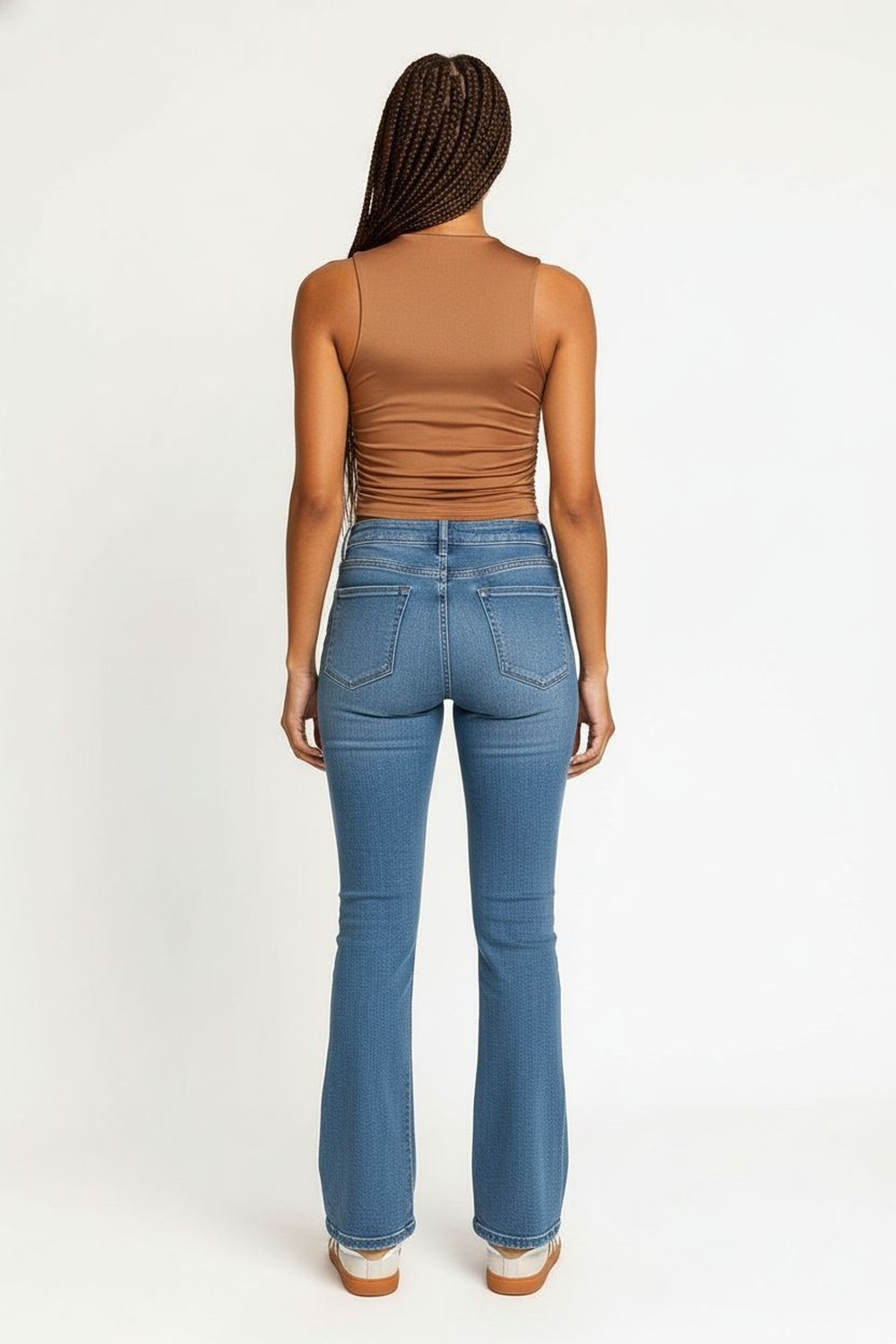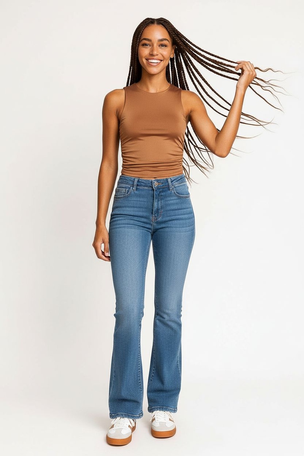 Top de tirantes anchos con corte ceñido que define el torso, drapeado lateral doble que realza la confección, tejido elástico de grosor medio que aporta soporte, terminación recta que brinda mejor caída, construcción reforzada que mantiene la forma
