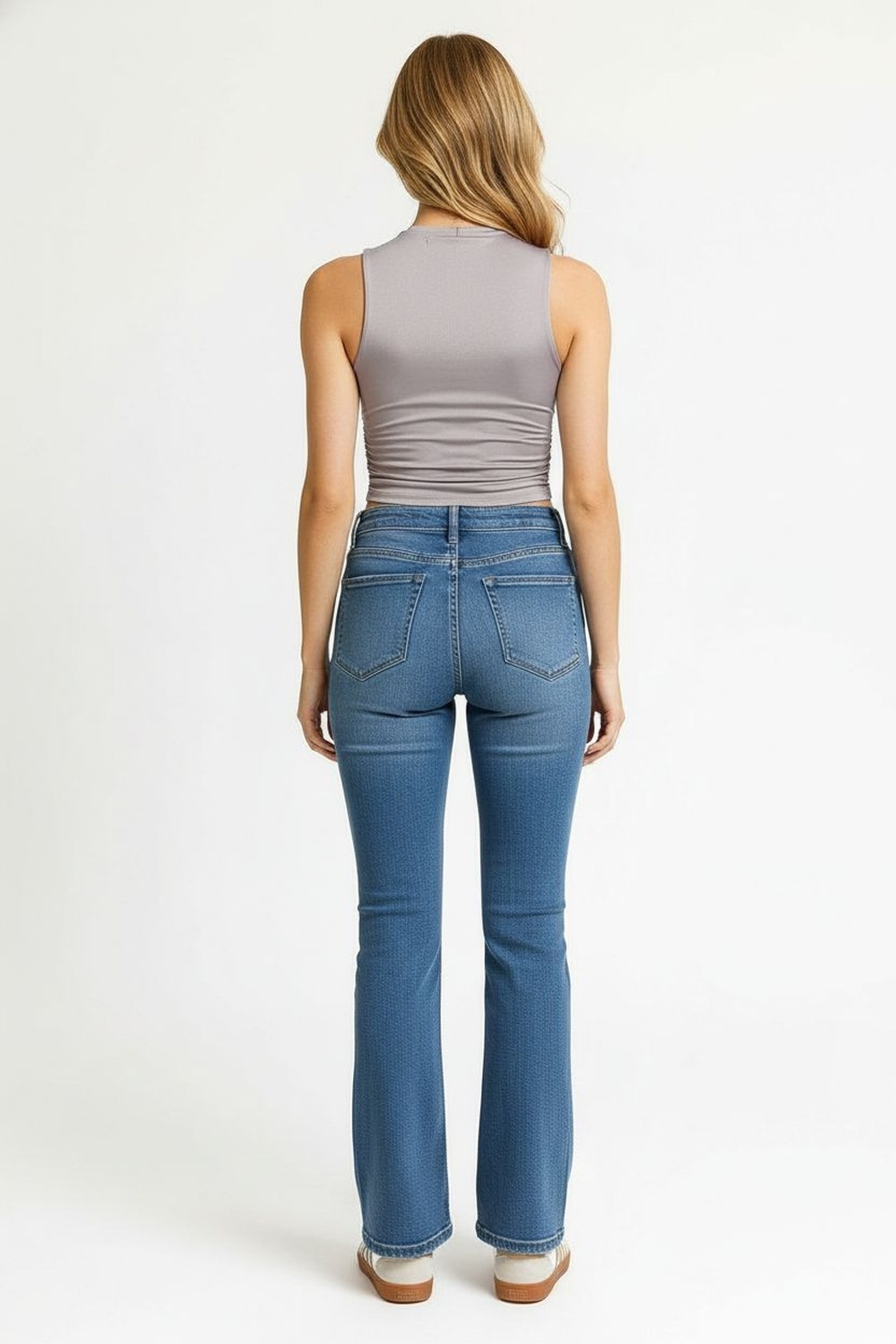 Top tejido de corte ajustado que aporta soporte al torso, cuello redondo reforzado que mantiene su forma, sisas amplias que permiten movilidad, bajo recto que da acabado limpio, confección suave al tacto con estructura elástica que se adapta al cuerpo