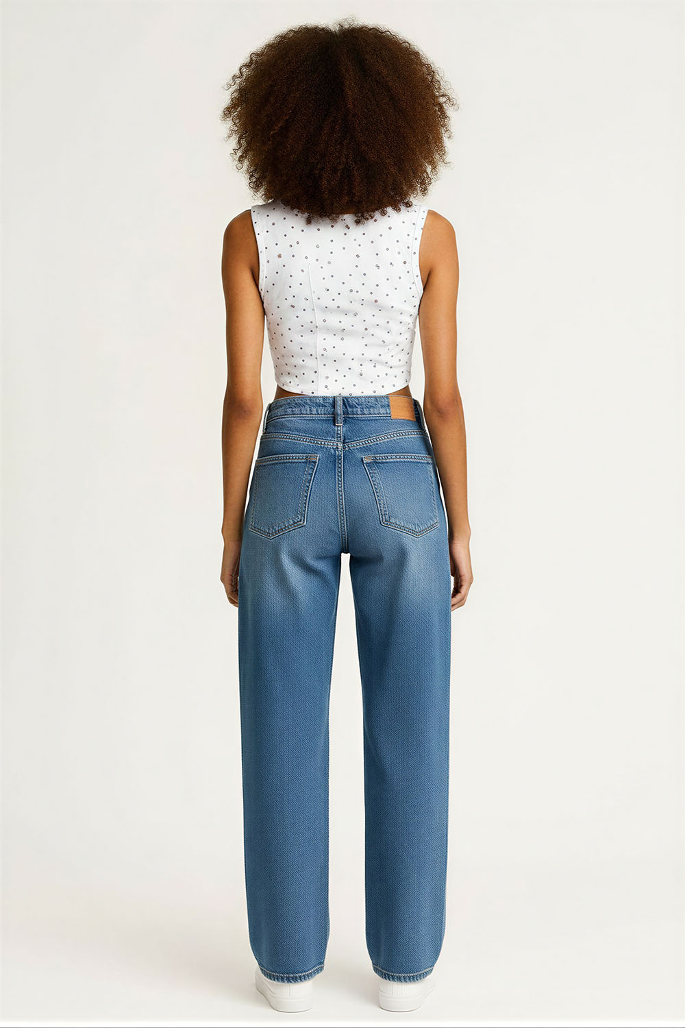 Jeans de tiro alto que estilizan la cintura, corte recto que brinda comodidad en piernas, diseño clásico con bolsillos funcionales al frente y parte posterior, pretina con cierre y botón que asegura buen ajuste, confección en mezclilla resistente que permite uso diario con confort