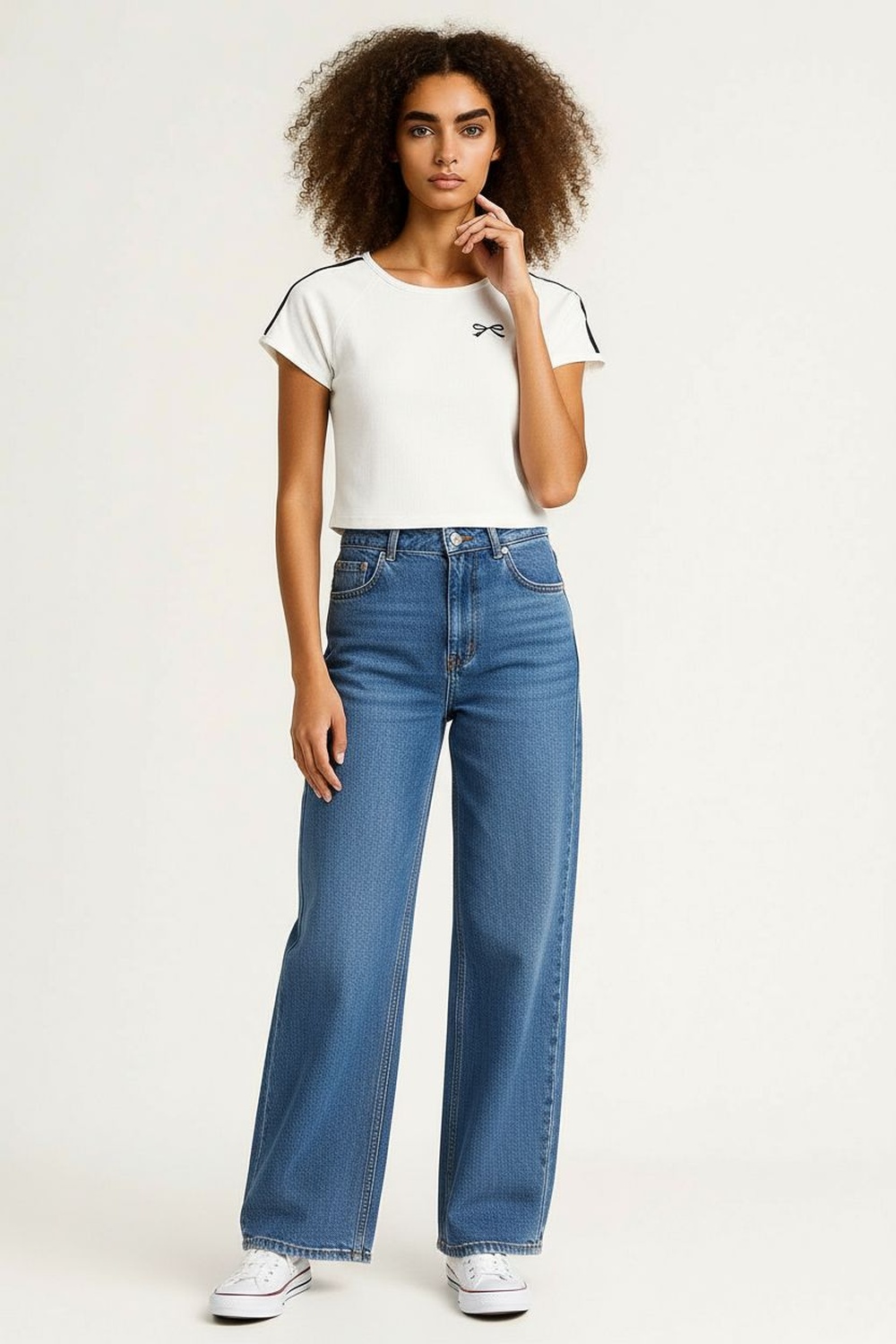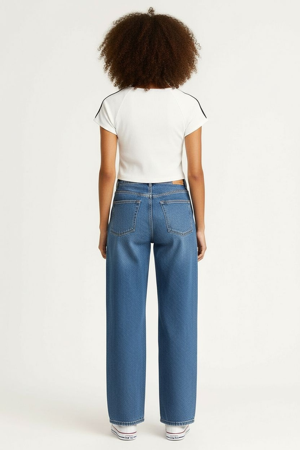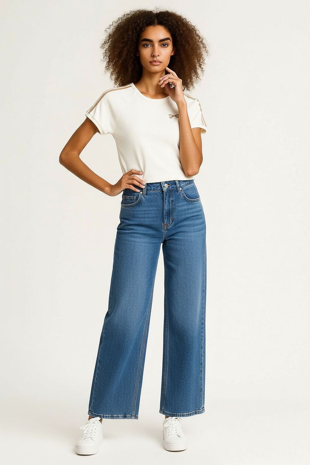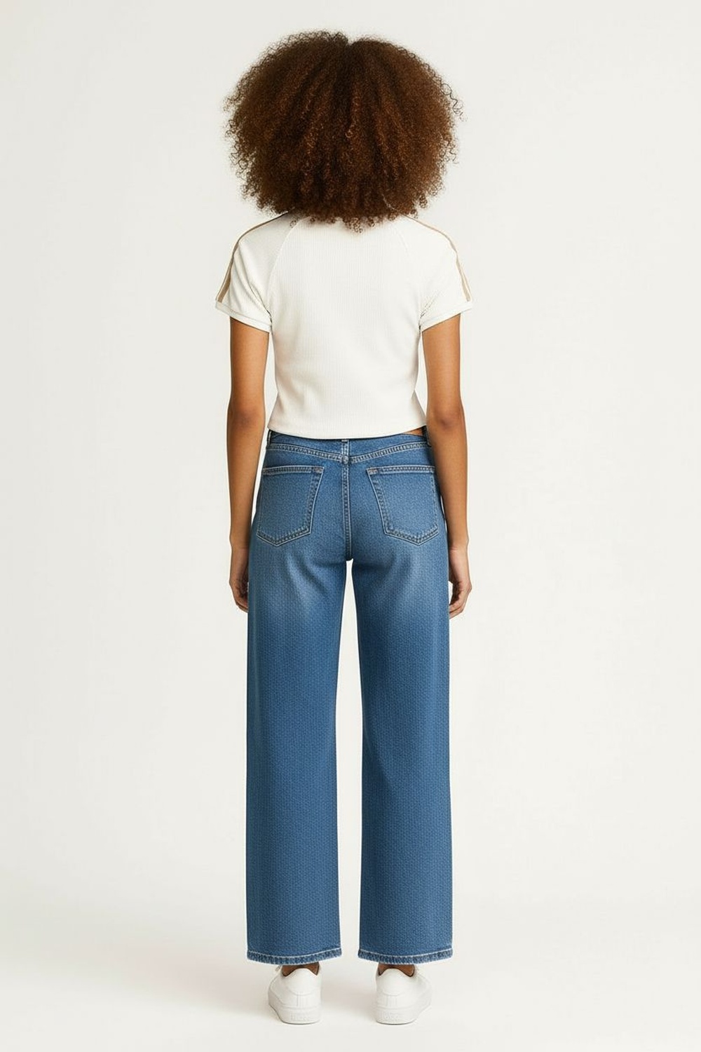 Jeans de tiro medio con cierre frontal, diseño de cinco bolsillos y apertura inferior amplia