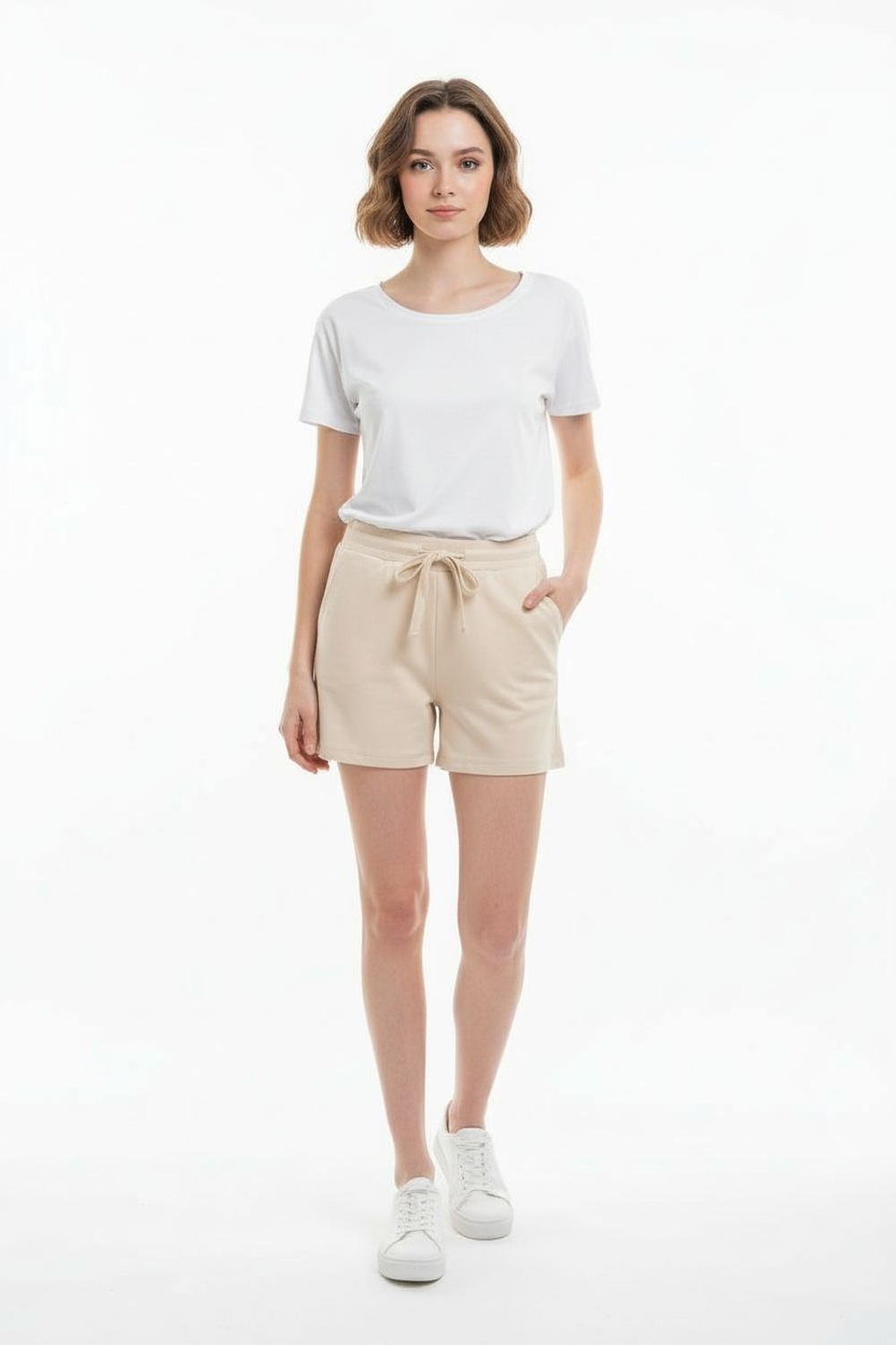 Short con cintura elástica ajuste cómodo bolsillos laterales diseño ligero y terminado recto en bajo