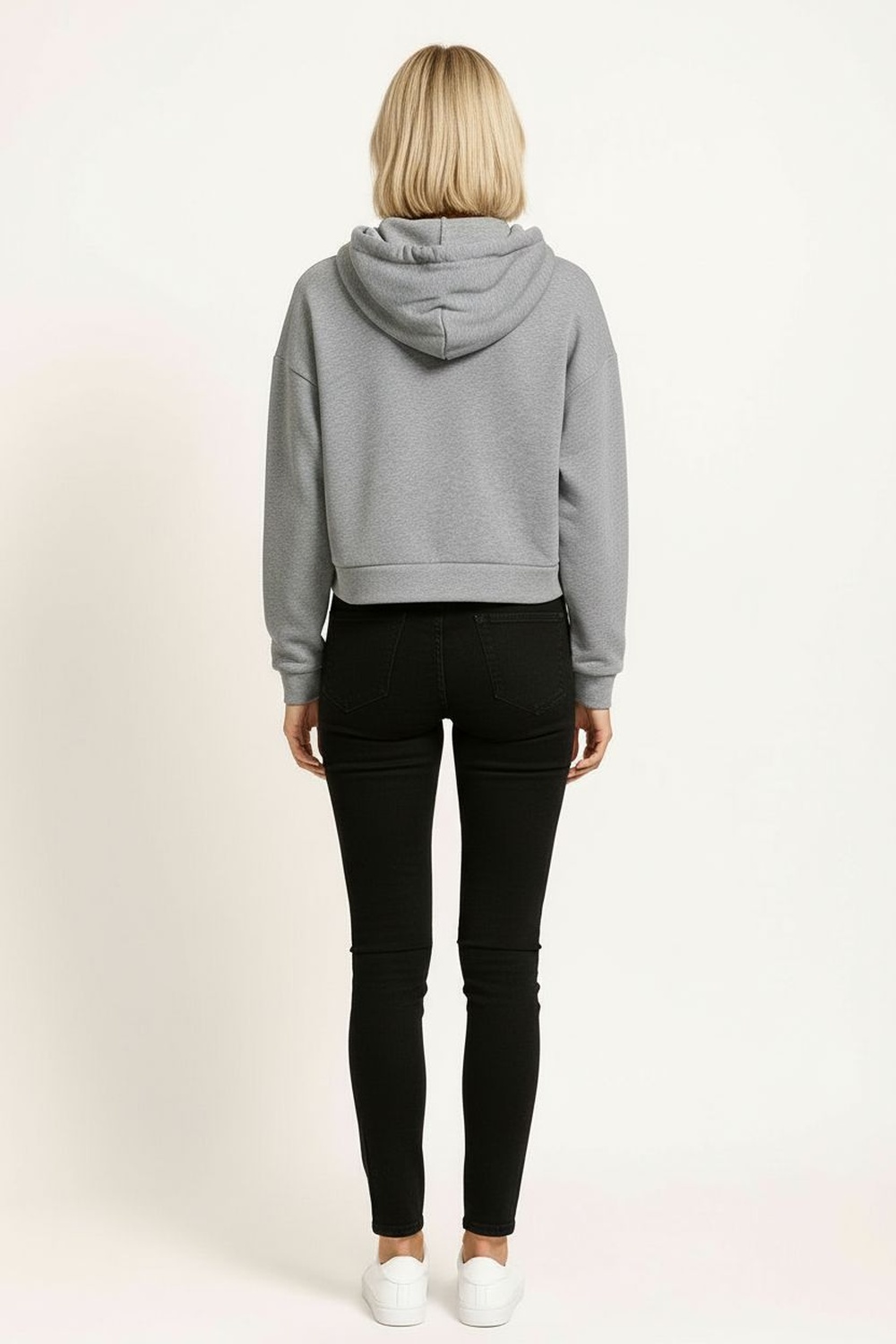 Sudadera corta confeccionada en paño ligero con capucha y jareta ajustable, puños elásticos que mejoran el ajuste, diseño moderno con acabado suave que ofrece comodidad y estilo relajado