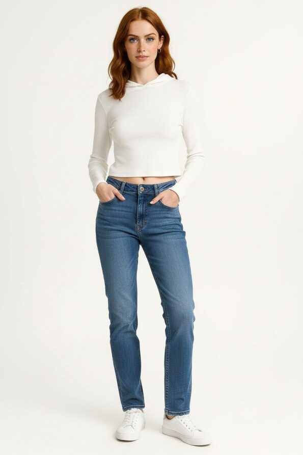 Sudadera corta con capucha ajustable mediante cordón que brinda un estilo moderno y juvenil, manga larga con terminaciones sencillas que aportan comodidad, corte a la cintura que estiliza la silueta y favorece un look relajado, confección en tela ligera y suave que asegura confort durante el día, acabado resistente que mantiene la forma tras cada uso