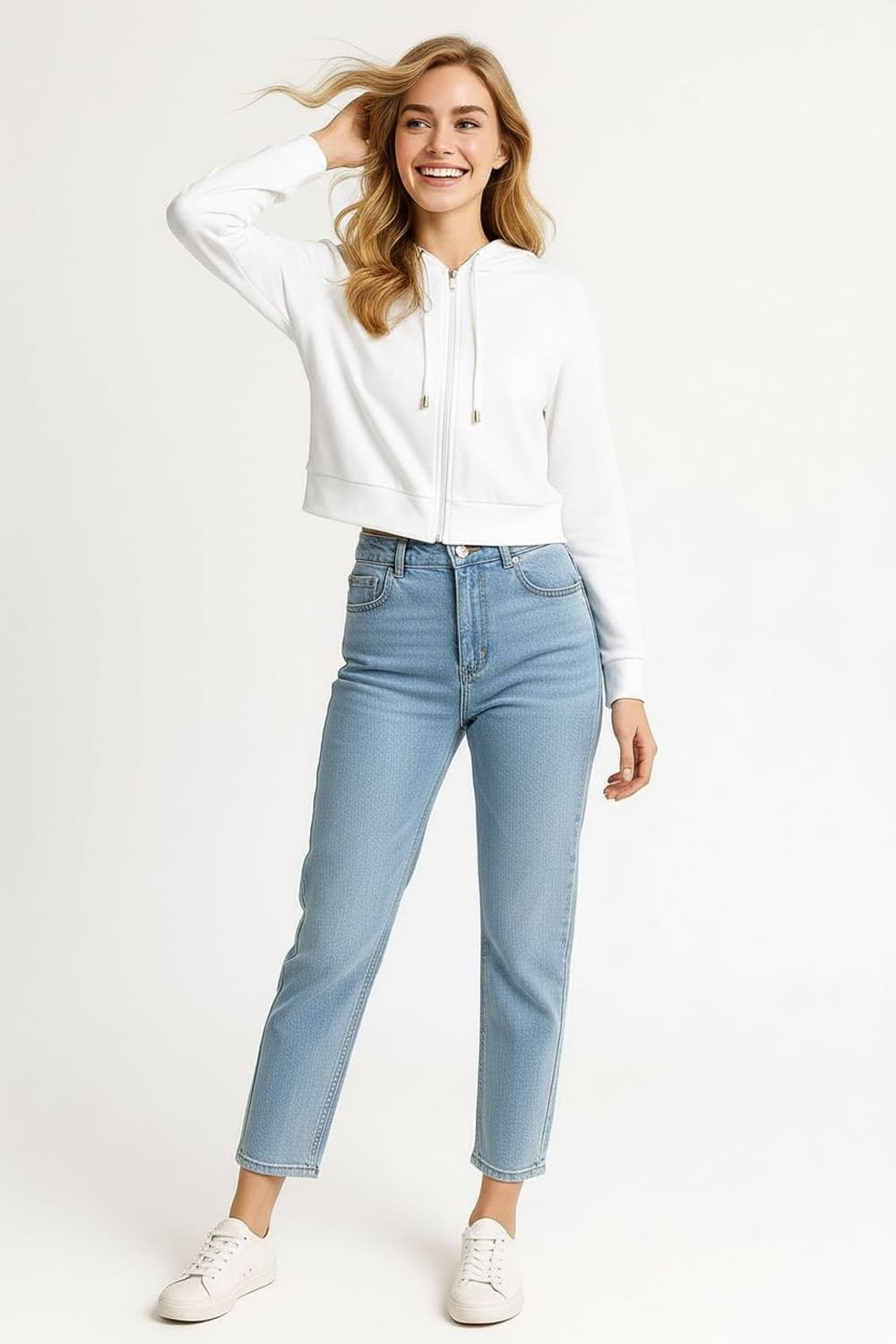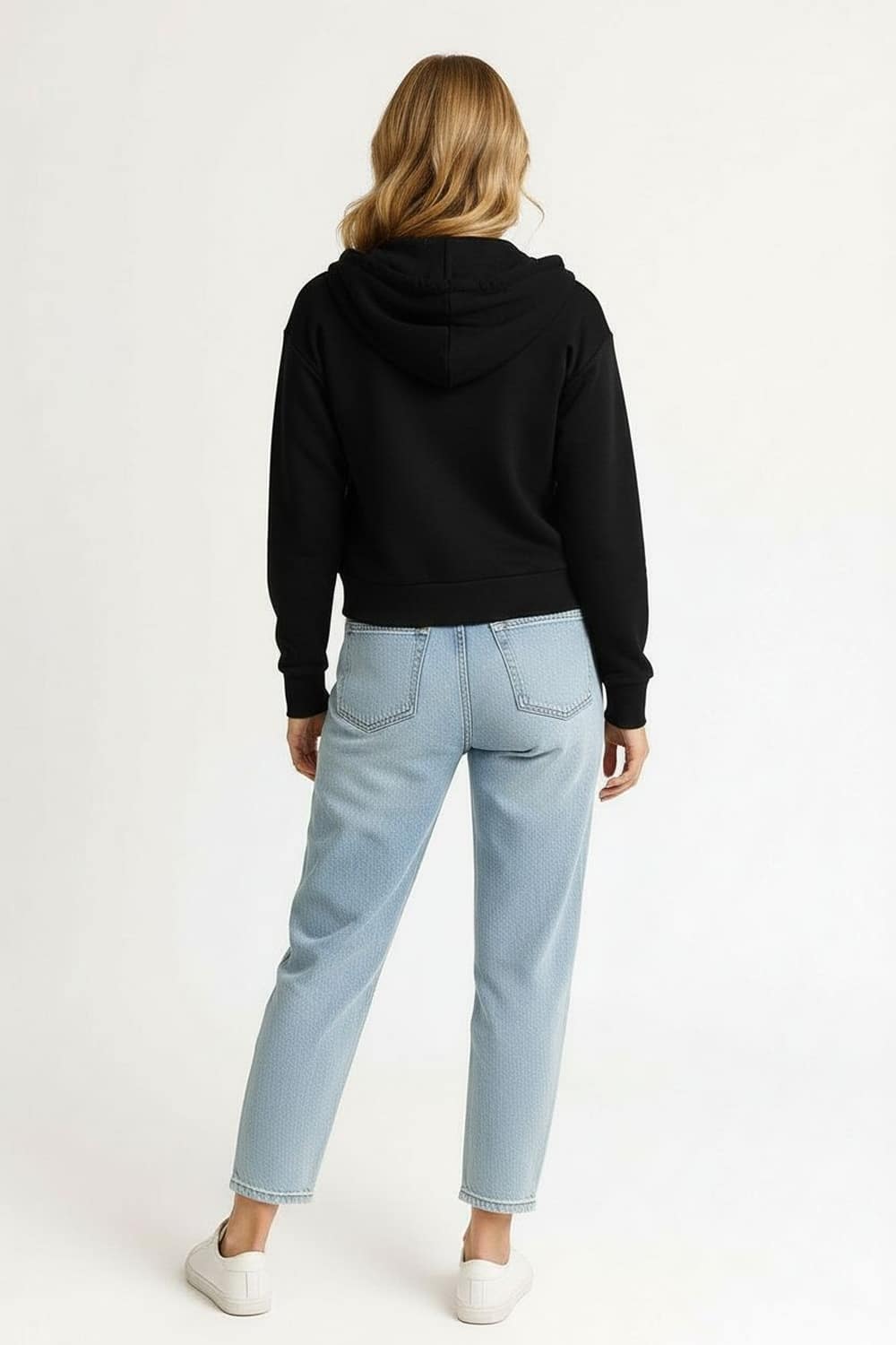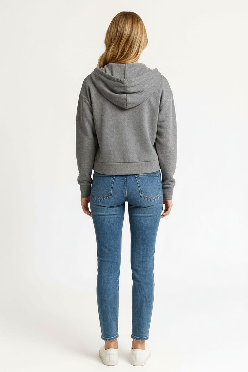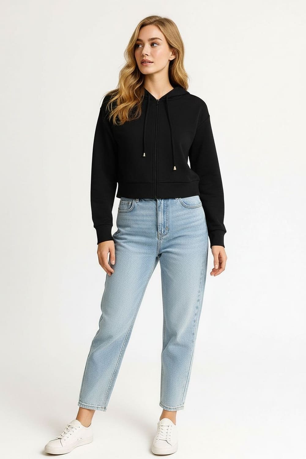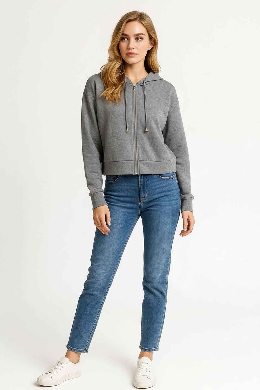 Sudadera de corte recto con capucha integrada que aporta funcionalidad, cierre frontal metálico que facilita la colocación, manga larga con puño ajustado que mantiene la forma, largo regular que equilibra la prenda, confección en tejido suave de grosor medio que brinda confort