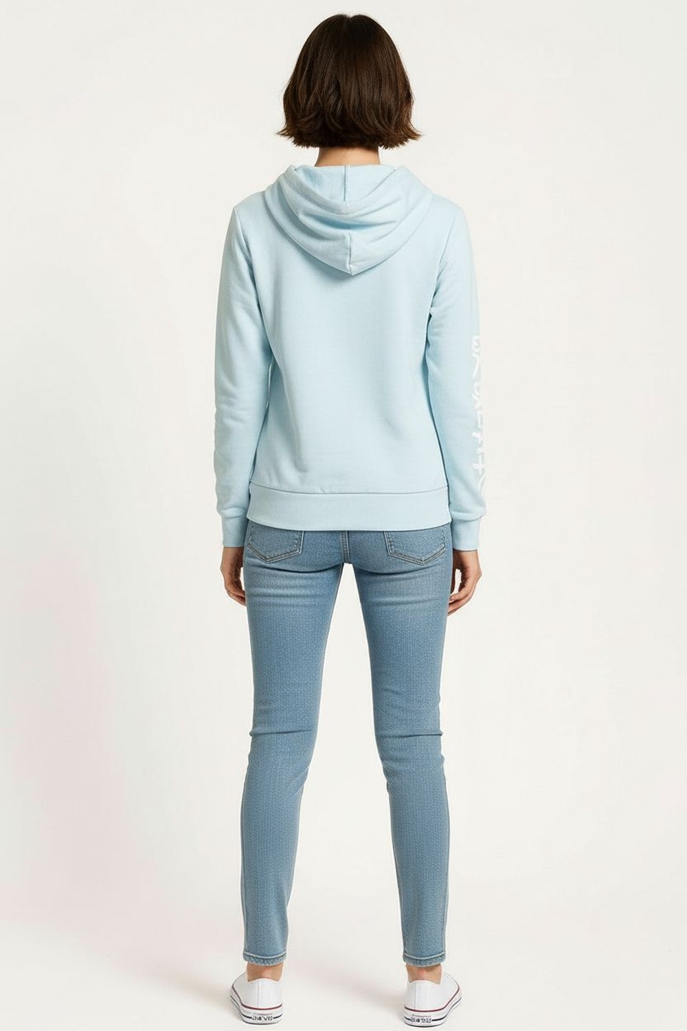 Sudadera estilo french con capucha ajustable y cierre frontal metálico, confeccionada en tejido suave y cálido con silueta moderna y versátil, perfecta para un look casual y cómodo en temporada