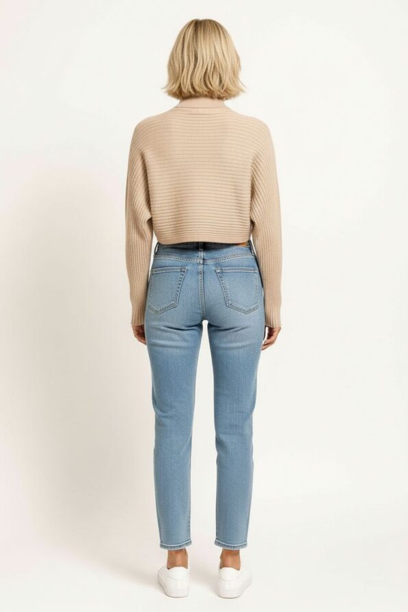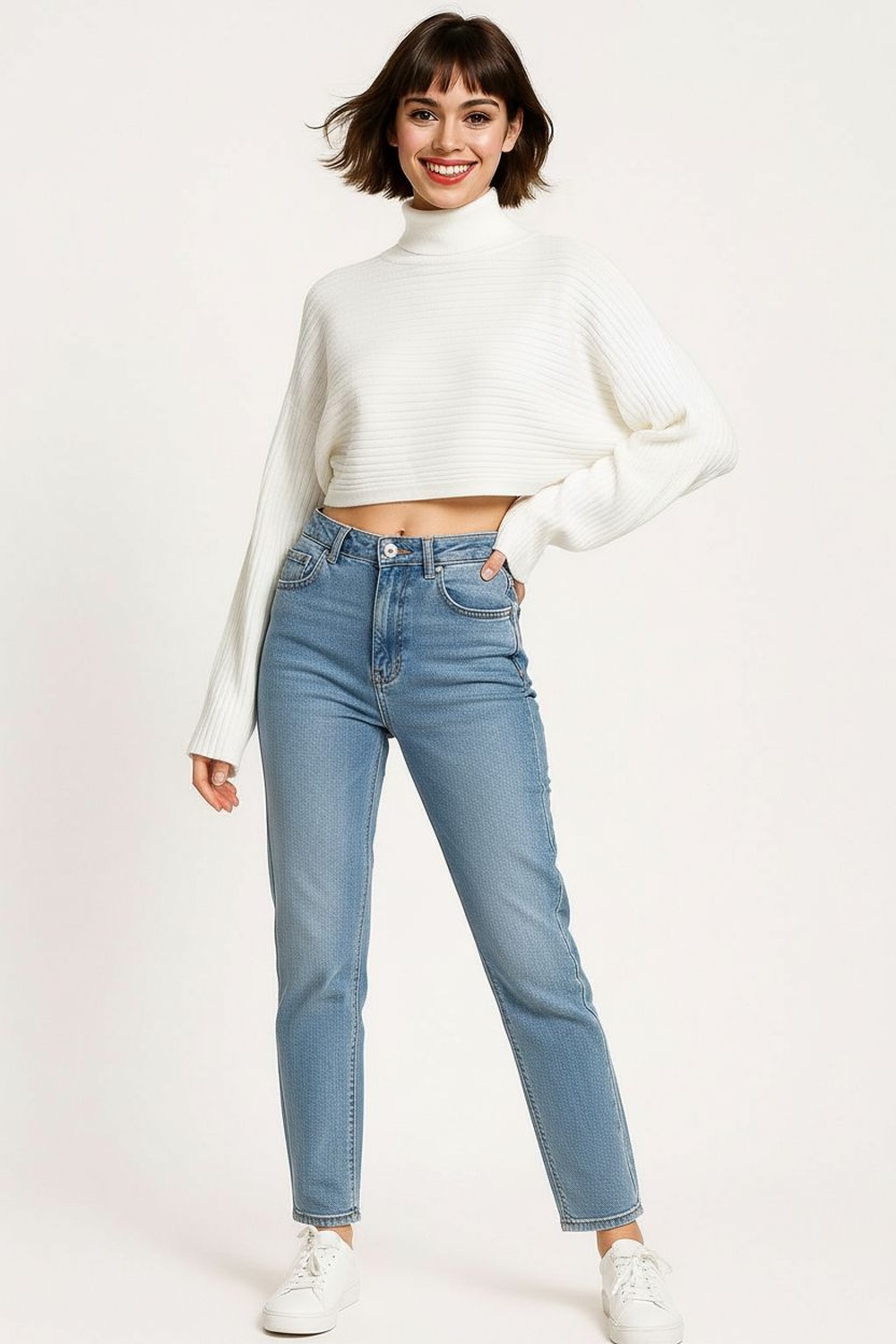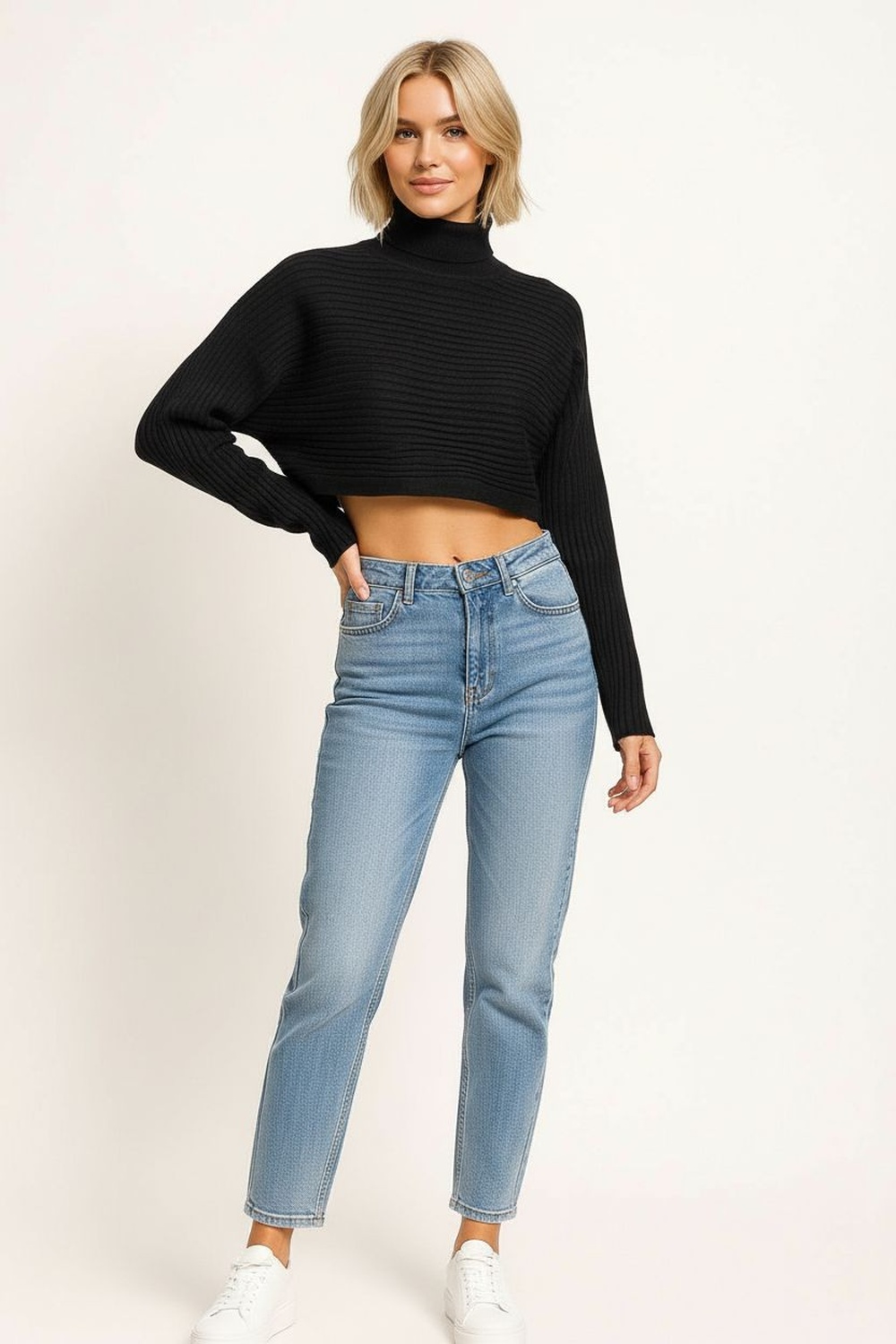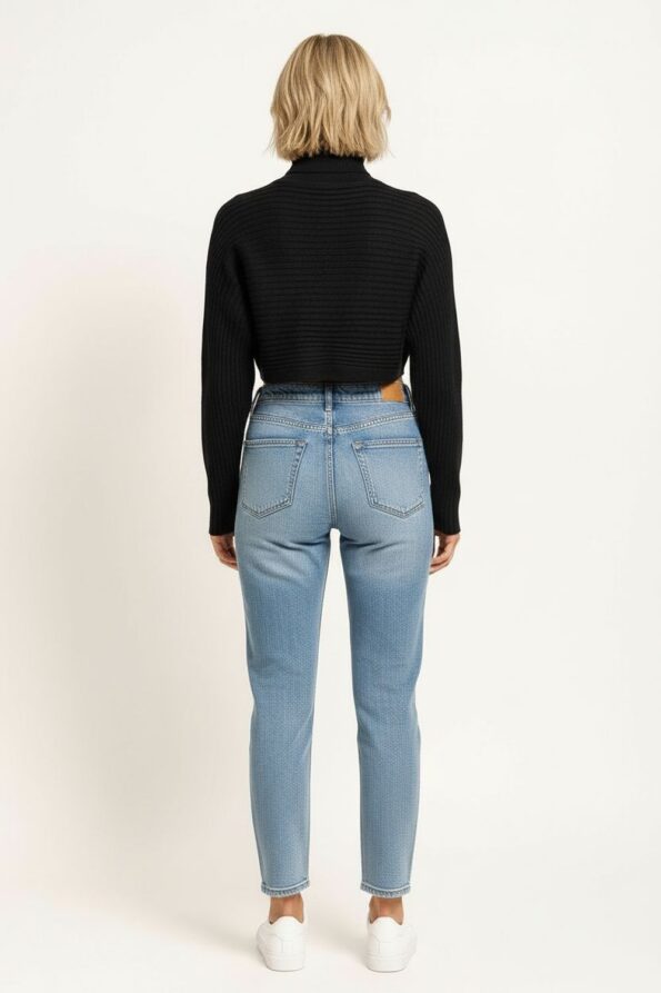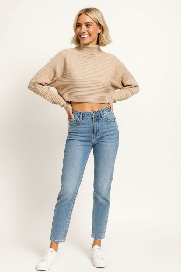 Suéter amplio de punto acanalado con cuello tipo tortuga que brinda calidez y un estilo moderno, diseño de hombro caído que aporta soltura y comodidad, manga larga ajustada en puños que equilibra la silueta, pretina ancha que da forma al diseño, confección en tejido suave y elástico que garantiza ligereza y confort
