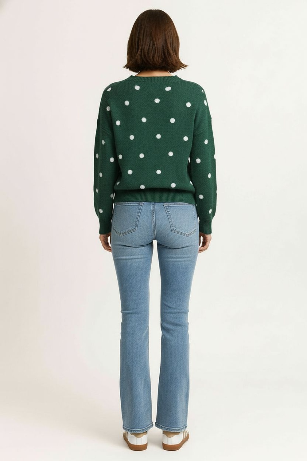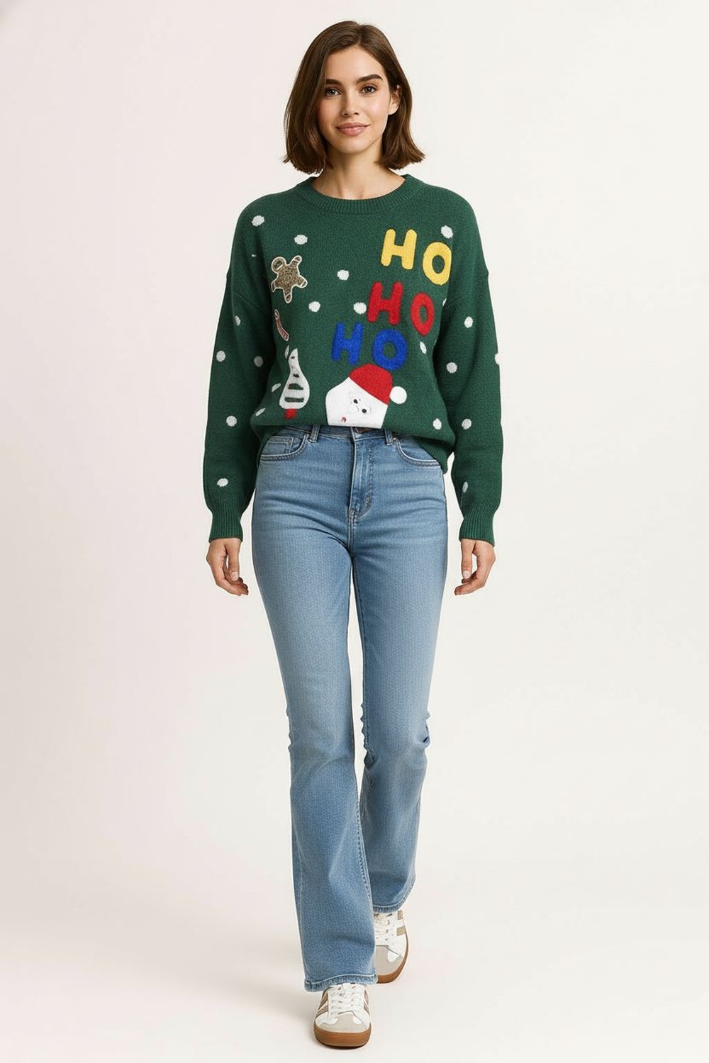 Suéter tejido con cuello redondo y aplicaciones decorativas tejidas que aportan un toque divertido y original, estructura de punto medio que brinda calidez y suavidad, terminaciones en puños y basta que aseguran mejor ajuste y resistencia al uso, ideal para lucir un look festivo y casual con estilo único