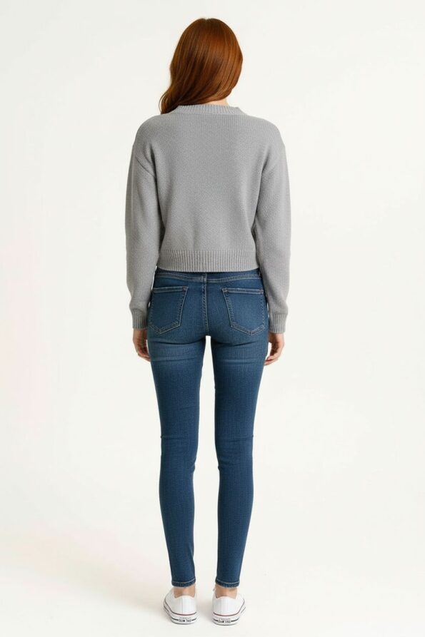 Suéter corto confeccionado en tejido de punto con diseño trenzado al frente que aporta textura y estilo clásico, cuello redondo acanalado que brinda estructura, puños y basta elásticos que aseguran un ajuste cómodo, material suave y cálido que ofrece confort durante el uso diario, diseño versátil ideal para complementar atuendos de temporada