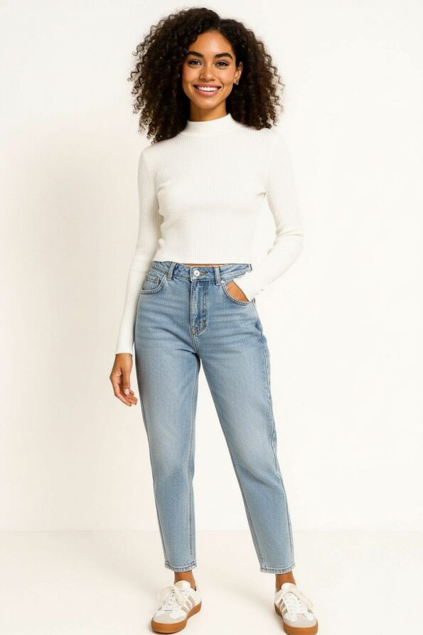 Suéter de corte ajustado con cuello alto que aporta calidez y estilo moderno, manga larga que brinda cobertura cómoda y versátil, terminación en cintura que define la silueta y favorece combinaciones con prendas de tiro alto, confección en tejido de punto elástico que se adapta al cuerpo ofreciendo suavidad y libertad de movimiento, ideal para outfits de temporada que buscan confort y sofisticación casual