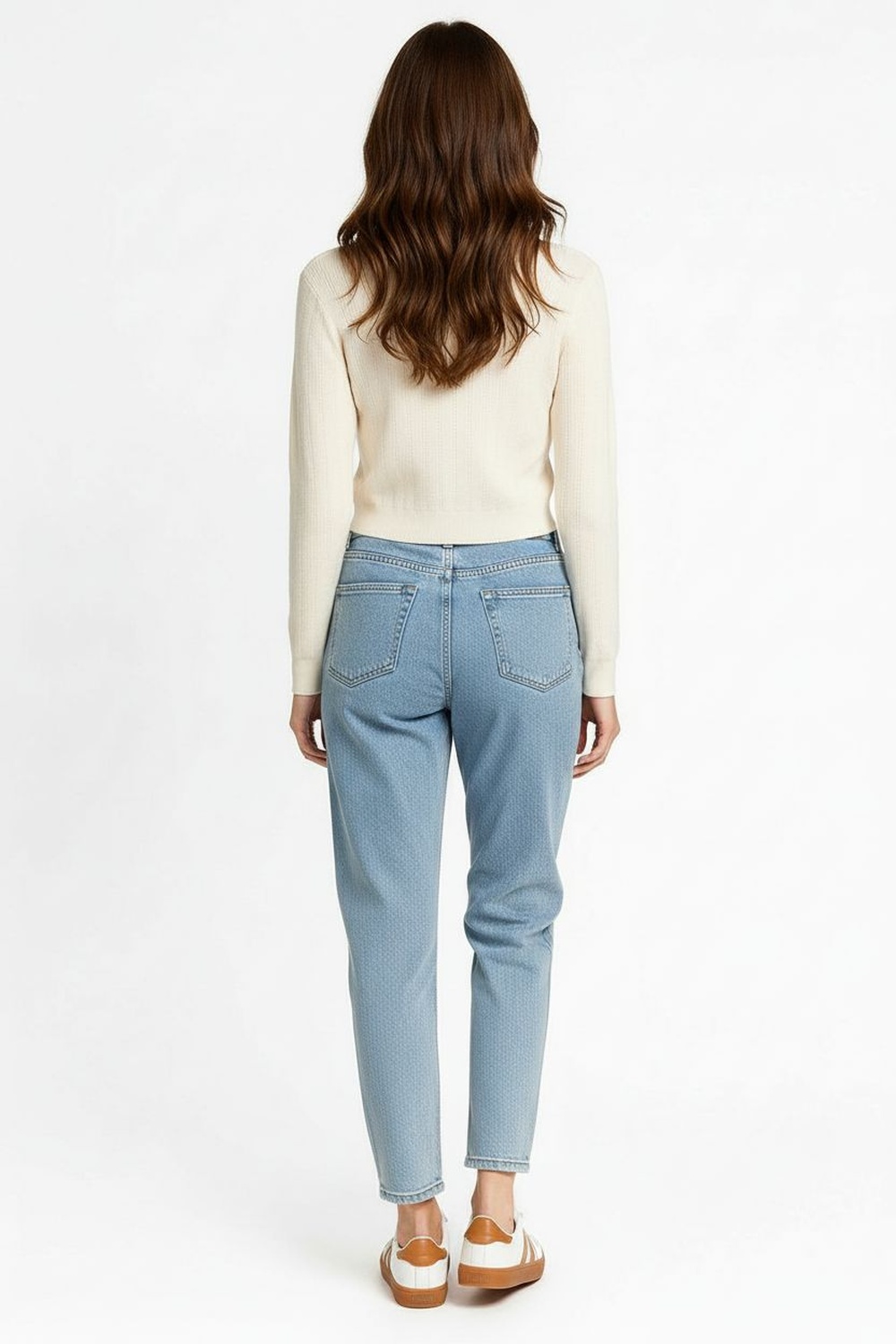 Suéter de manga larga con tejido abierto que brinda un acabado ligero y transpirable, cuello redondo acanalado que aporta estructura, detalle lineal en contraste que realza el diseño, confección en punto suave que proporciona comodidad y una caída natural, ideal para un look casual con estilo moderno