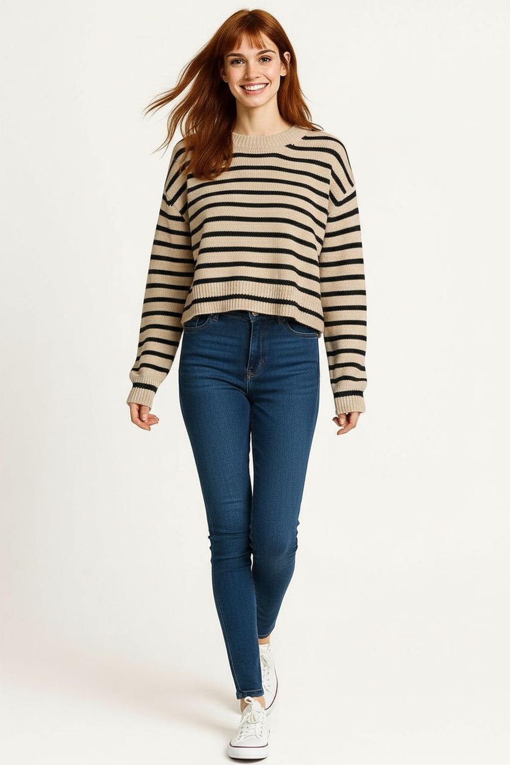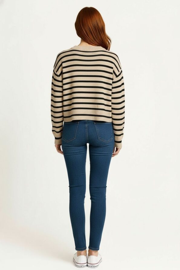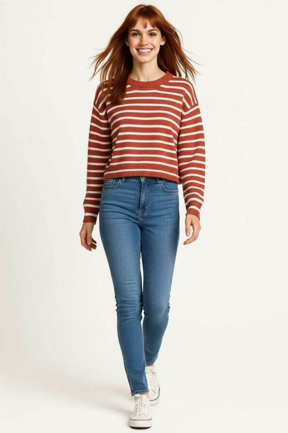 Suéter grueso de manga larga con cuello redondo acanalado, confeccionado en tejido de punto con textura marcada que aporta volumen y calidez, diseño corto que realza la figura con un toque moderno, terminaciones elásticas en puños y dobladillo que brindan mejor ajuste y confort en cada movimiento