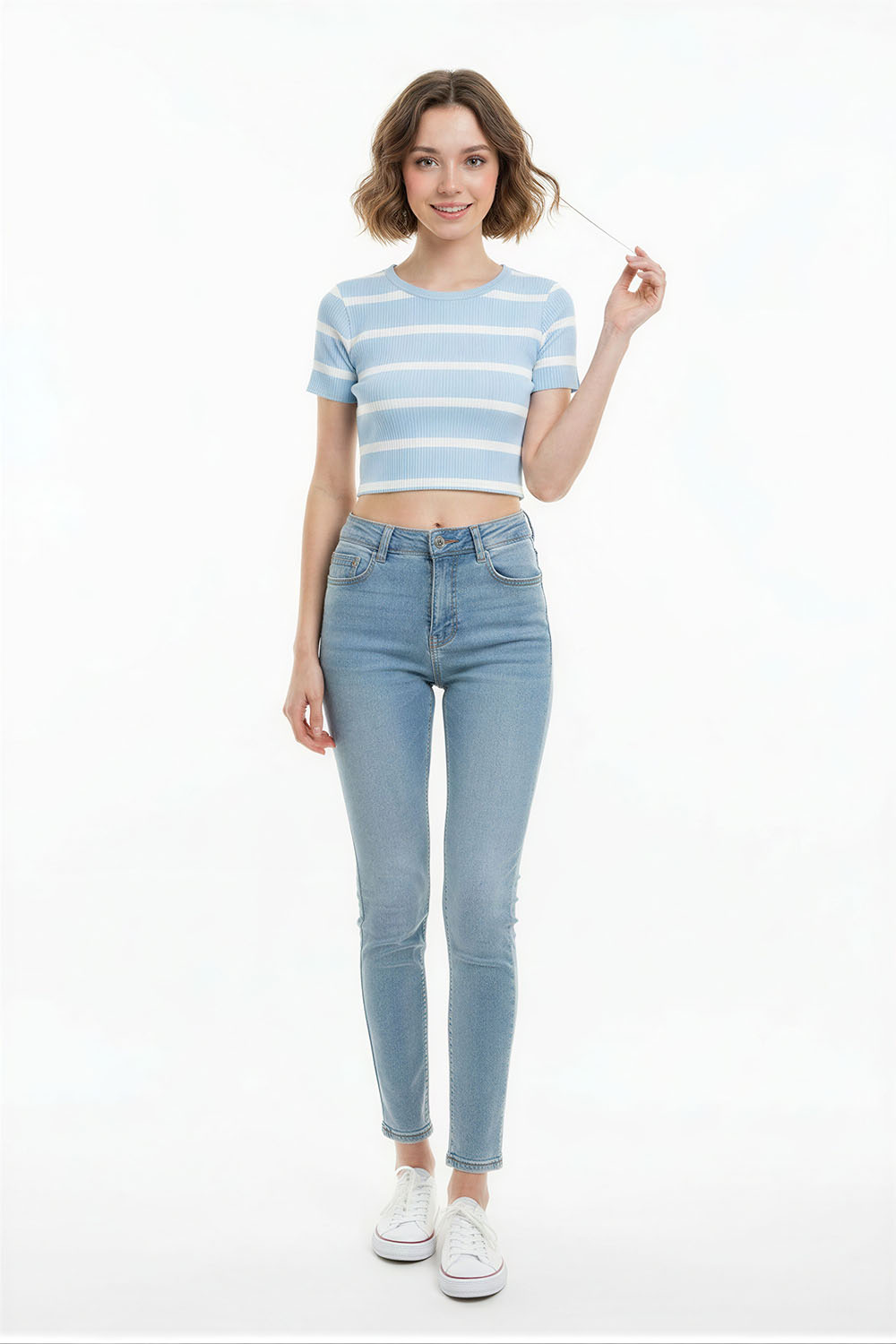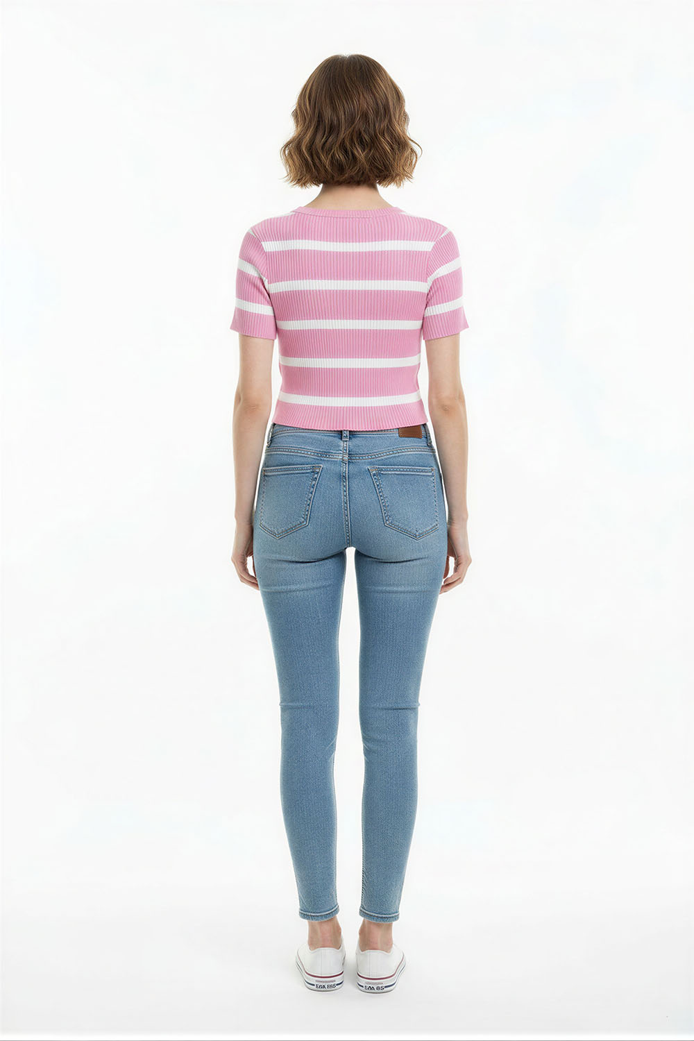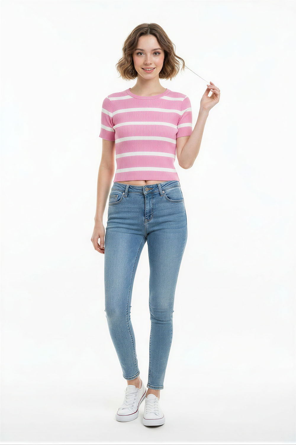 Suéter corto de tejido ligero con textura acanalada que se adapta al cuerpo, manga corta que permite mayor frescura, cuello redondo que brinda ajuste cómodo, acabado elástico en cintura que mantiene la forma, confección suave que facilita el uso diario