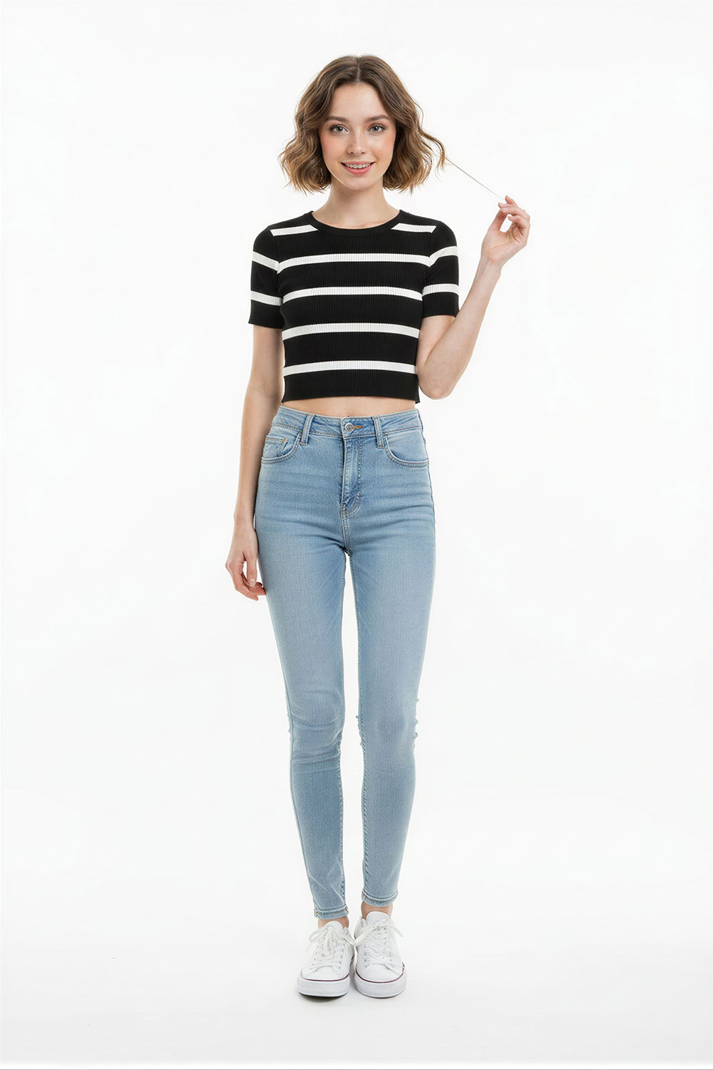 Suéter tipo polo de tejido fino con textura acanalada que se adapta al cuerpo, cuello camisero que aporta estructura y definición, manga corta que brinda frescura y comodidad, corte crop con pretina ajustada que resalta la silueta, confección elástica que permite libertad de movimiento y ajuste favorecedor
