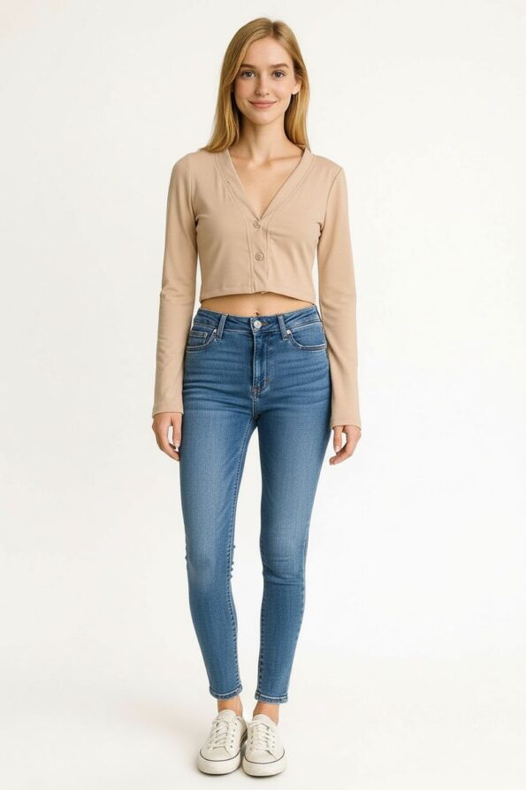 Playera de manga larga confeccionada en tejido chenille de tacto suave que aporta confort y calidez, escote con abertura en forma de pico y botón al tono que da un toque moderno, corte ajustado que resalta la figura, estructura ligera con caída natural, acabados limpios que garantizan durabilidad y una apariencia pulida