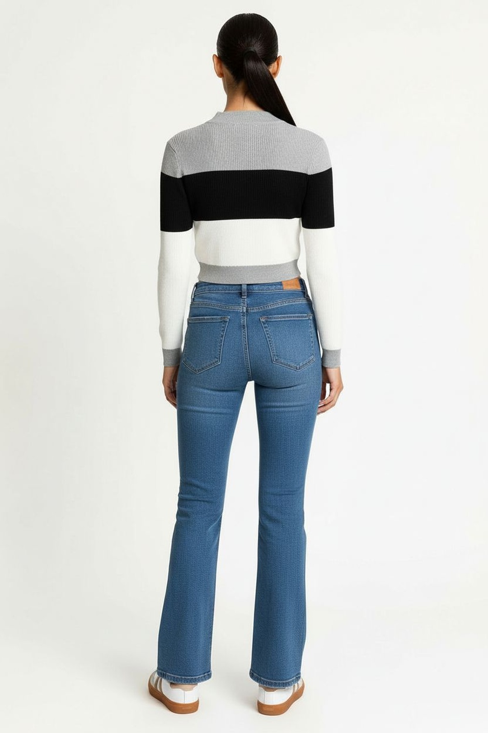 Playera de manga larga con cuello subido que aporta estructura, confección suave al tacto con textura cepillada que brinda comodidad, diseño entallado que define la figura, largo a la cintura con dobladillo discreto que mantiene un acabado limpio
