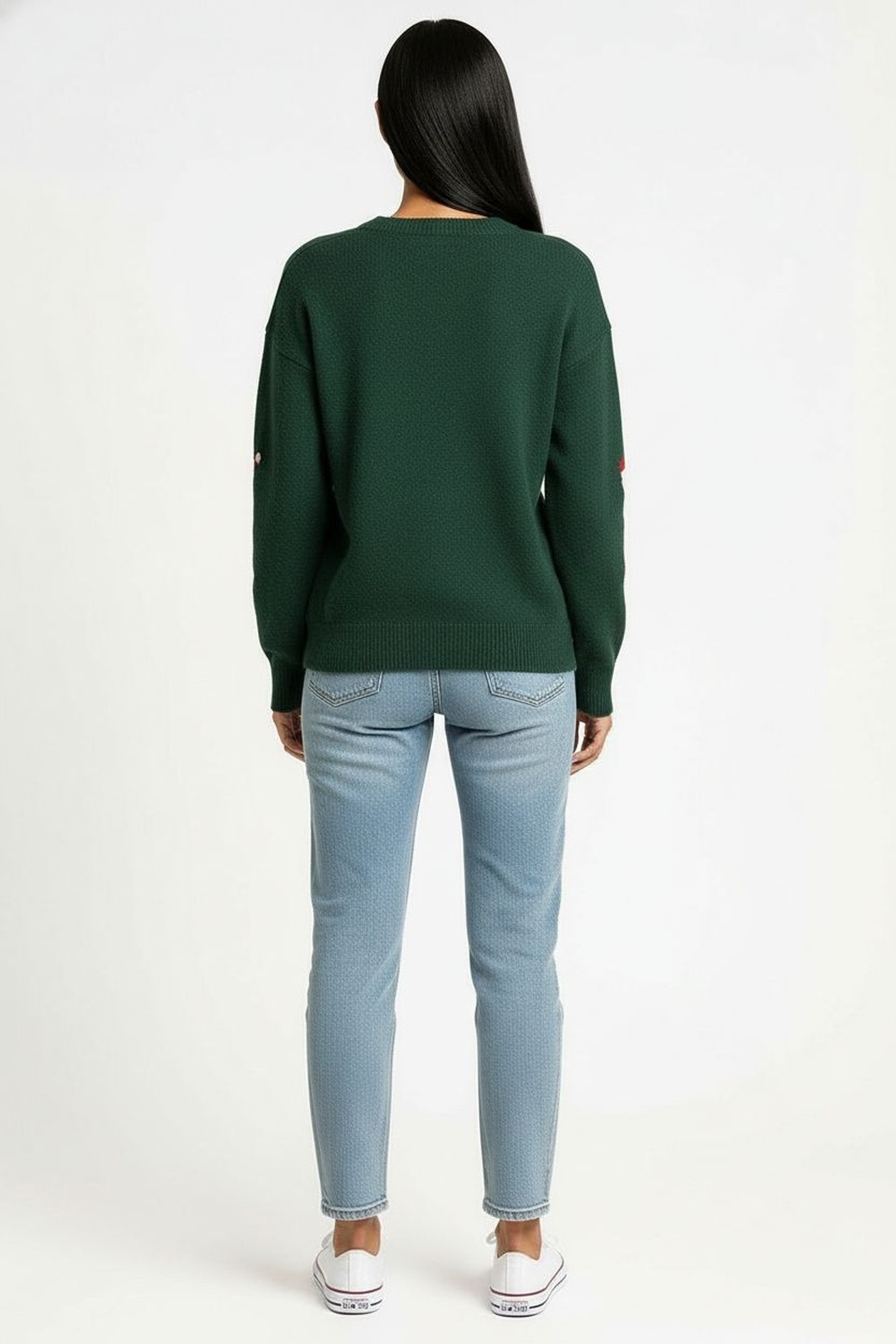 Suéter tejido con diseño decorativo de figuras bordadas, cuello redondo con ribete que conserva la forma, manga larga con terminación en puño elástico que mejora el ajuste, confección suave al tacto que brinda comodidad en climas frescos